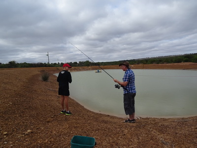 After our yummy and late lunch we headed home via the fish farm which was initially for a look and turned into a great afternoon past time for The Pipe and Newby. I was simply the fishing lackey (nothing new there) but the delight on the face of the fisho was worth it. He was heard to reflect on the way home that “time spent with family and friends is priceless”. If you make it to the Chapman Valley be really sure to go to the fish farm and chat to the young man that runs it. He is a lovely person, who allowed us to stay beyond closing (we got there 15 minutes before it was due to shut) and checked on us and his fish to make sure we were still having fun. The Piper and The Newby caught some great Silver Perch and tried their hands at the monster Barra but they were all full up. The ones that got away were huge as always …