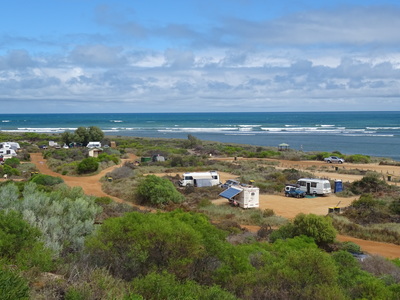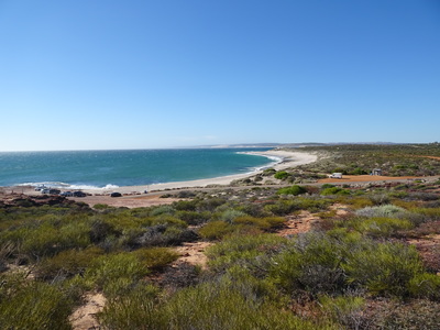 I’ve never been here although I’ve driven past it. We got to see it at its best, the day after Easter so there was almost no one there. As you can see from the photo below our lunch spot was simply stunning, with a picture perfect view out the window and The Piper had the water to himself. It’s great being self sufficient and with a loaf of bread and a ‘fridge full of food we had a picnic before walking up to the lookouts to check out Dynamite Bay. And what a dynamite bay it is. The pic below is not a pano. Lunch turned into a 3 hour stop and we dragged ourselves away after coffee from the general store. I thought the seals were our last stop but it wasn’t to be with the need to cache burning for The Piper and Newby, we stopped in Jurien and knocked over half the basic ones before finally hitting the long road home. Our trip ended uneventfully although we were shattered from the excitement and sunshine.