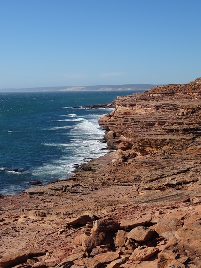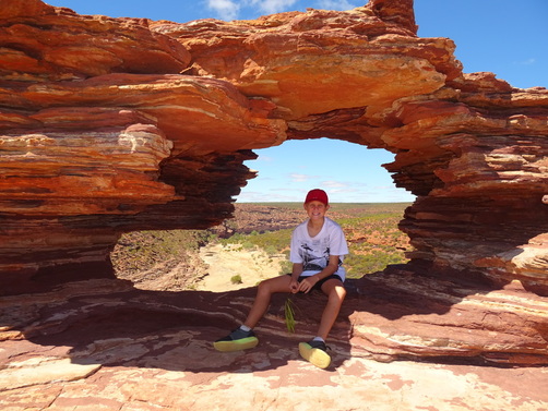 Finally a bright and sunny day. Be careful what you wish for, this turned into some real heat in the Kalbarri National Park. We headed to Kalbarri for the day to show The Piper around and revisit a great place. First stop was Binnu (for a cache cause there ain’t much else there at all) then on to Ross Graham lookout in Kalbarri NP. I’ve been to the NP before but not this part so I enjoyed the short walk. From here, with a grumpy Piper, we headed to Natures Window and enjoyed this walk as well. The place wasn’t too crowded so we got the obligatory pics and headed into town for a pie and puffy toot at from the bakery with a view to die for at Chinaman’s Beach.