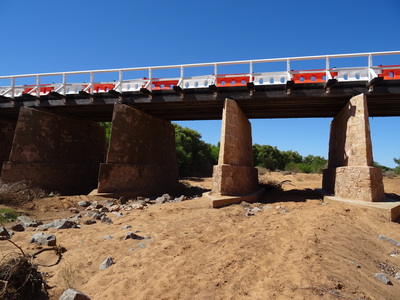 First stop was the convict bridge, built in 1864, that is undergoing restoration but is nonetheless impressive especially as it is apparently the oldest timber bridge still in use on a public road and has much of the original timber and stone work in place. How do I know? Well I’m not that old so it must be from a cache of information. Next stop was St Katherine’s Hall for a stop long enough to burn fair skin and fry the patience of the saint herself, before heading for the new bridge where the soloavo finally popped the cache cherry! The victory dance didn’t rival that of The Newby a couple of days previously (Taps Aff v Taps Oan) but the passing traffic were not doubt glad. With very little of Greenough experienced but heaps learned we decided to head for Green Head to eat lunch and have a rest. This turned out to be a fantastic decision.