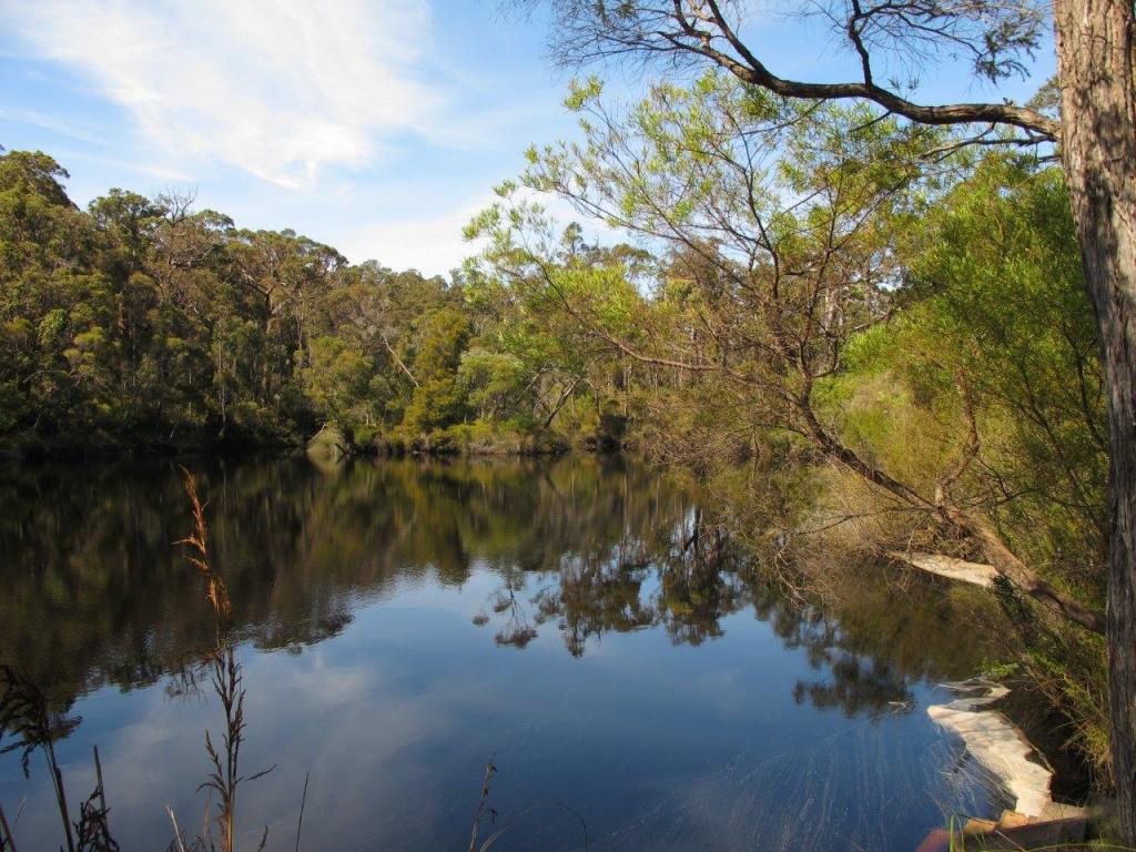 Back through Pemberton about 6pm with Master 11 telling me the trailer is making a funny noise and me insisting it’s all fine. A quick squizz at the map and we’re headed for the bicentennial tree and Warren NP and the camp ground there. Cruised past the bicentennial tree turn off because we can go back in the morning and as we turned onto the road I can finally hear the noise Tyly has been telling me about for the last 20k. I stopped, jumped out, thought we had a flat tyre on the trailer but no, we had busted a bracket on the water tank and had been dragging it the last 20 odd km’s (or more) by the inflow and outflow pipes! Needless to say it has holes in it (it’s brand new!) and is rubbish now. But the clamps on the two pipes were so tightly applied that it took us quite a while to get the tank off. And then Ms 17 went under and got the broken bracket. There goes our 80L of water. Never mind. We used the little bit left to fill up the water bottles and strapped the tank to the camper and went in search of our campsite. Less than 3k apparently, but rounding the corner we came across a closed road, and a handwritten sign on a white board explaining the campground closure due to work following winter rains. Really? Why is the sign not miles back at the entrance? Turning around again.