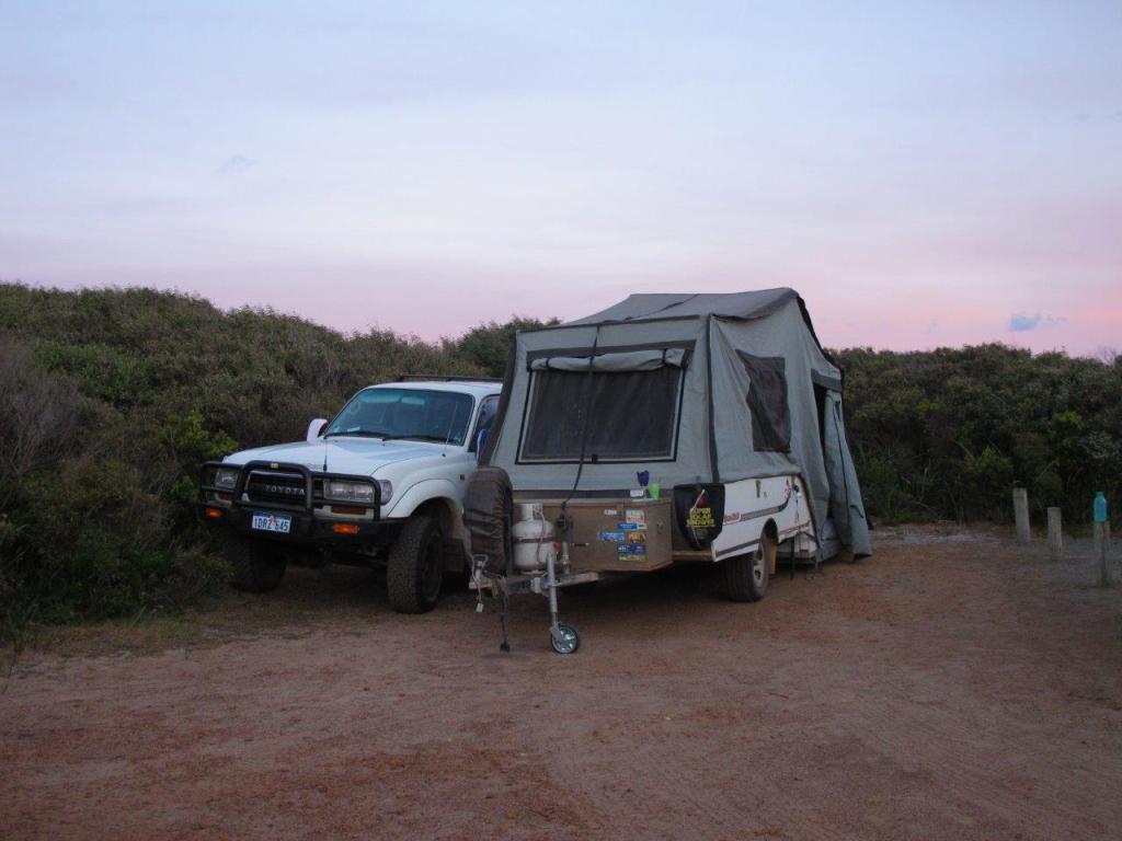 By this time Ms 17 is happy and Master 11 is crying. He’s scared and she’s having a hoot! I’m just plain knackered and need alcohol. There’s no way I’m going back so onwards we go to this place. Northcliff. At the Eco-caravan park. Which is code for someones property, a few sites, a couple of toilets and showers and nobody else here. As good as what I had hoped for but with hot showers! Just a fair bit later than I planned and a lot further. It’s really very nice (at least I think so, we got here as it was getting dark). We have it to ourselves. There is a guy staying in the camp kitchen who is walking the Bibbulman track but we haven’t seen him. Anyway, we’ve eaten and showered and the kids are asleep. It’s 9.30 and it’s been a hell of a day. I’m not sure what tomorrow brings other than a squizz at Windy Harbour and then onwards with the adventure. I’ll need to get water but that’s easy. A few litres at IGA and we’re all good. I hope to be camping somewhere by a beach tomorrow night but we’ll see. I better get fuel too!