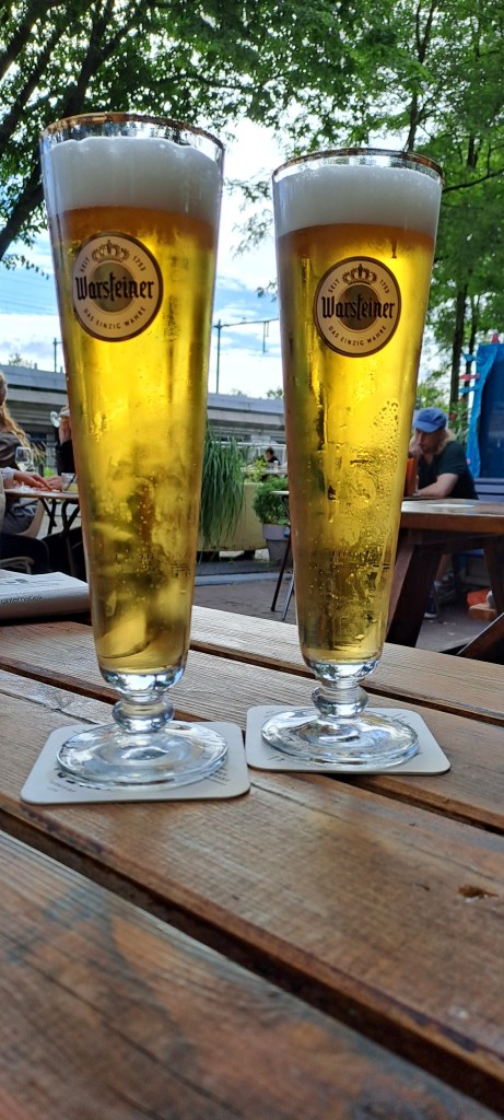 We needed to hop off the train at Bad Bentheim and wait for an hour for another, not in the original plan, and this put us well behind the original 7 hour trip. In fact we didn’t get into Amsterdam until 4.30pm, 90 minutes late. Lucky we didn’t have a connection. We set off like mad people, only to realise I had left my jacket on the train, so Ampelmann went back for it. Take two, and we finally got to our lovely studio accommodation in a beautiful location canal-side. After a quick change of shoes we headed out for a beer and some bitterballen and some fries, before stocking up on groceries, and heading home for a bevvie or two.