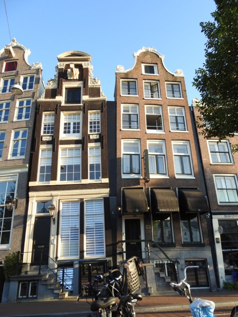 Our evening walk took use past quite a few wonky houses. Now I understand why some house lean forward (to get furniture in via windows, without it slamming into the facade as it is hoisted), however I’m not talking about forward leaning houses. I’m talking about sideways leaning houses! These are amazing and very funny to look at. I can’t get enough of them! There are single ones, and whole clusters of them. In some clusters, the houses on each end lean in opposite directions! In order to see a few we walked a long way, eventually turning for home after 30,000 steps. I was absolutely exhausted and had the start of blisters on the bottom of my feet! What a day. Amsterdam is starting to grow on me.