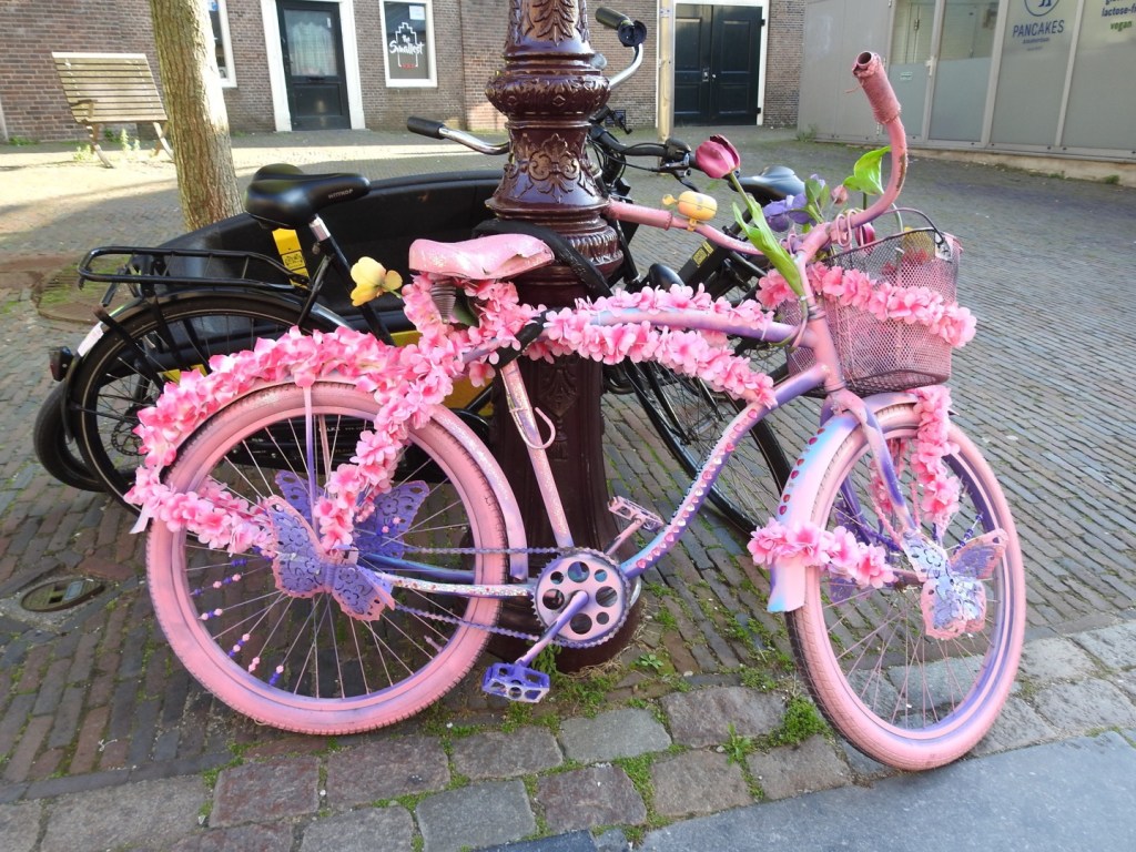 Our last stop for the visit was at the pancake restaurant where we found a spot away from the crowds and tucked into some yummy lunch, choosing the farmers pancake, with bacon, onion and cheese. Yummo! That will hopefully sustain us until we get home. Full up with windmills, crowds and pancakes, we found our trusty and rusty bikes, and pedalled off on the next part of the loop. The homeward leg took us through a couple of villages, along the river and back across on a different ferry, making that our third! The ferry has been our most-used mode of public transport in this city, and I was soooooo pleased to see it this afternoon! It took us safely on the last part of our 30kms journey, on two rusty, warped, squeaky, heavy bikes. Apparently their lack of any comfort or ability to ride at any reasonable speed, allowed us to appreciate the ride. My legs and bum don’t agree, and want their money back!