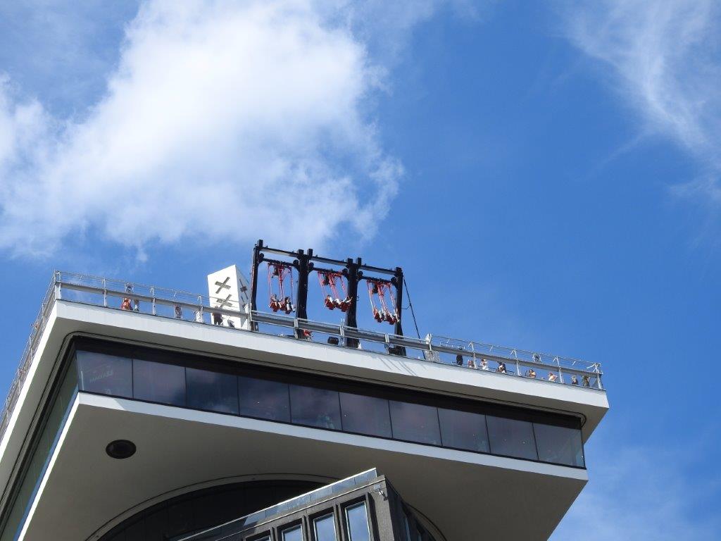 Coffee done, off we toddled. A quick jaunt to the A’DAM building, a new building complex in Amsterdam Noord, which comprises office and co-working space. Its then topped off with a revolving restaurant, and a sky deck, 21 floors high. As if that’s not enough fun for the one building, it has a set of swings, billed the highest swing in Europe, which happily allows you to swing OVER THE EDGE of the building. Now, anyone that knows the Avo, will know that heights are not a speciality. This is why we avoid them at all costs, except of course when we travel anywhere (think the tallest viewpoints in everywhere we have been), and we don’t do anything high as a birthday experience (think Uluru in a hairypopter two birthdays ago, and Sydney Harbour Bridge climb last birthday). I think you’ve probably cottoned on by now…. yup – WE ARE DOING THE SWING! Up to Floor 21 in around 10 seconds, then ready for the experience. Sweaty palms aside, it was phenomenal. Look down if you dare (I didn’t), but savour the views of Amsterdam city skyline on a beautiful sunny afternoon, while swinging like a 5-year-old. It just doesn’t get better than this! Or does it?….