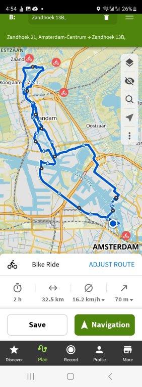 Today is windmill day, at least I hope it is. As long as the weather and the bikes and my legs all cooperate. There is a website called IAmsterdam which obviously has loads of information about things to do here, including cycling trips. They have a route called the Industrial Heritage Cycleseeing Route: Windmills and shipyards, that we are following out to Zaanse Schans.