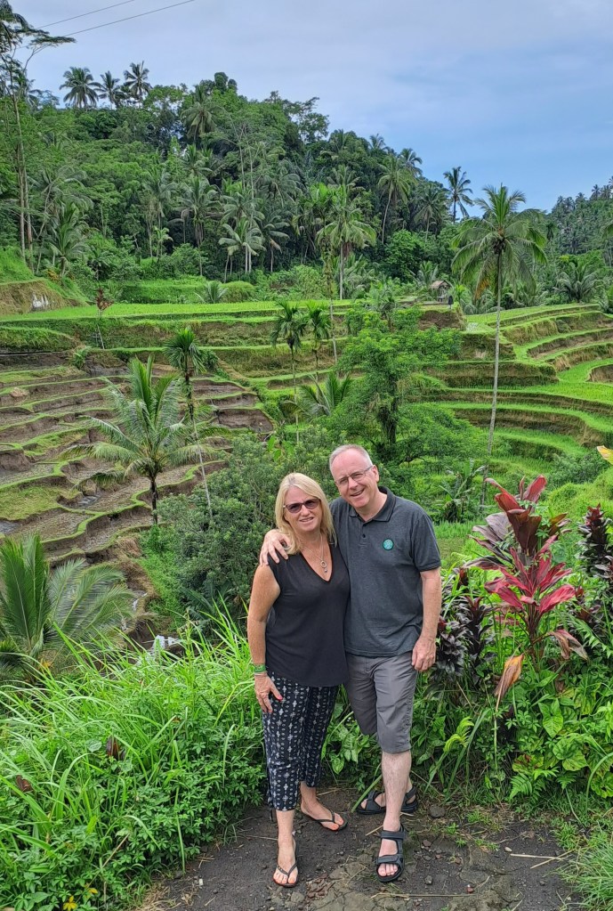 So Bali, this activity was much more enjoyable than my tour on the last trip. Here’s how I reviewed it on TripAdvisor: We are a couple of oldies (54 and 56) who do cycle at home, but just wanted to cruise downhill, in holiday mode. This tour was perfect. We were picked up from our hotel at 10.30. It’s a fair drive from Legian / Kuta / Seminyak, but definitely worth it. Everything was provided, including helmets and bottled drinking water. The bikes were in good condition and suitable for the tour. We stopped to look at rice terraces and working rice fields. We visited a family compound and Kadek introduced us to some interesting information about Balinese culture and way of life. We visited a temple and cycled through a dozen villages. All up, we went downhill for about 27kms! The cycling part of our trip ended at a warung at 4.45pm, for a delicious meal. A great day out in the island! Would highly recommend this tour to anyone who can balance on two wheels.
