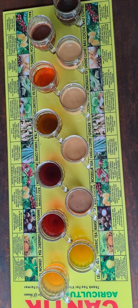 After all that exercise, we definitely needed a rest day, around the pool. So, after breakfast that’s exactly what we did until the need for more coffee drove us out onto the streets. We didn’t go far and, on the way, Jimbaran started the tricky process of gift buying in Bali. The requests included “Bali pants”. Fortunately (or unfortunately) our very short walk to the non-existent café that Jimbaran had chosen, took us right past a market stall selling pants. In no mood for the obligatory haggling, I choose the 6 pairs, and left him to negotiate the price from 900,000 to 300,000. It was almost too hard to watch, but with his experience from Vietnam, he was definitely the man for the job and secured the purchase! I almost need alcohol instead of coffee after that! We did find a nice little roastery just near the villa, and enjoyed a very nice coffee and quiet reprieve from the heat outside.