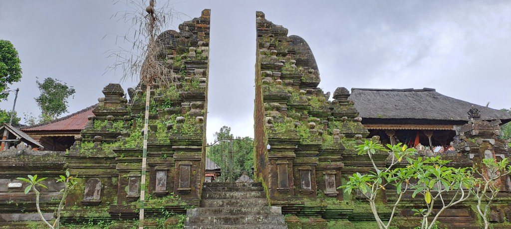 The compounds are clustered in villages and the villages have 3 temples, one of which is reserved for death rites and cremations. After leaving the family compound we visited a village temple and listened intently to Kadek explain in detail about how the temples in Bali have different roles. I noticed the exquisite split arch entrance to the temple and it’s resemblance to the entrance of family compounds. I also noticed the offerings on the ground in many places. Offerings are made at three levels, on the ground, at mid height and up high. Once this was explained, it’s amazing how you start to notice these. The ones on the ground are obviously easy to spot, but now I am noticing the others.