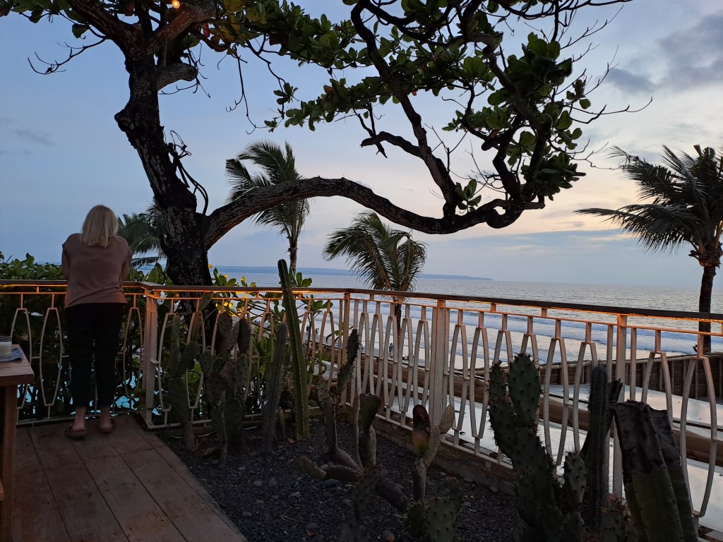After the busy activities of yesterday, today is a designated rest day! As with yesterday, we started with breaky delivered to the table but today Jimbaran ducked across the road and bought us a proper coffee. It’s worth noting that the price of the proper coffee is comparable to a coffee at home. Given that a cuppa is often the best way of working out the exchange rate, that makes Bali relatively expensive. Anyway, the coffee was much better than the stuff we had yesterday and nothing is as important as coffee.