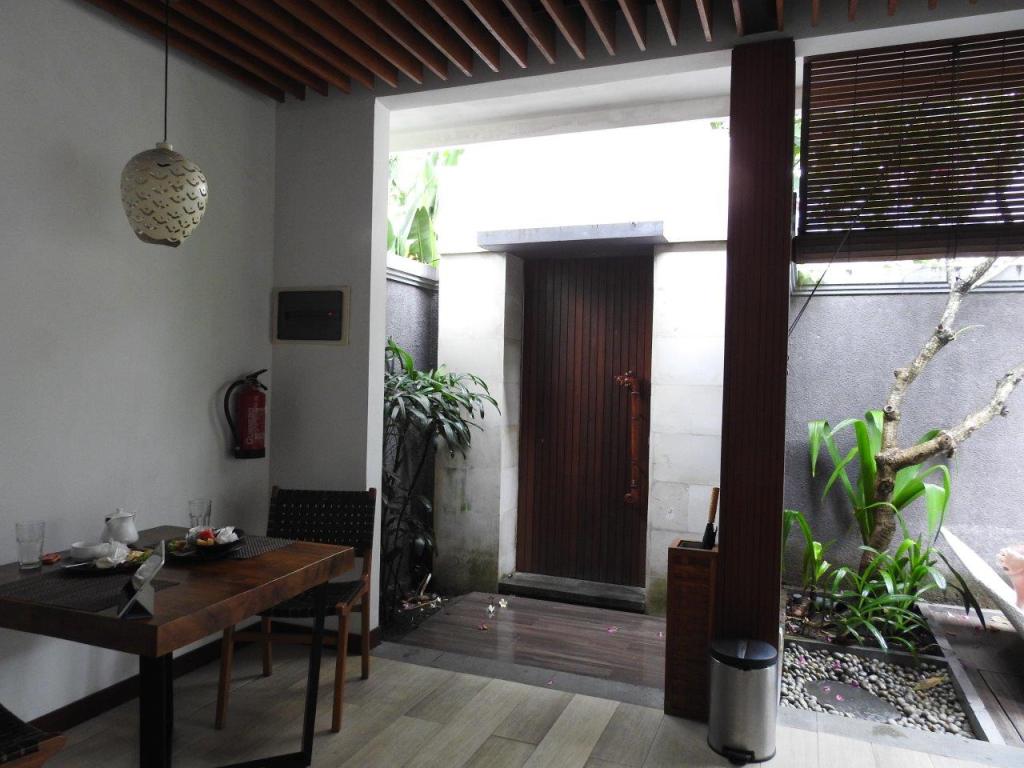Eventually though we were through and found our lonely bags on the carousel, grabbed some water and went in search of our pre-booked driver ($15). A word or two about our driver and the car. He was with his wife, both looking barely old enough to be out of school, never mind married! I made the assumption they were students but was informed that an education was above the financial capability of a driver. The car was fine for the task but lacked seat belts, something you don’t realise you naturally expect, until you can’t find it. Anyway, we were safely delivered to the accommodation and checked in promptly. The foyer area is similar to every other tropical hotel foyer we’ve been in; open air, tall ceilings, chunky furniture and floral displays. Very inviting at midnight. Following check in we were escorted to our villa, along some paths within the complex. Through the large gate we entered our “compound”. After a quick orientation we were left to ourselves to explore the villa, pool and other areas.