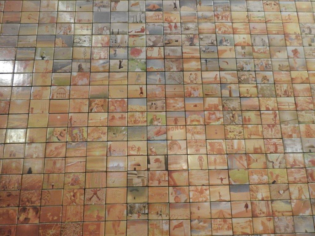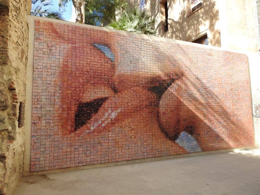 Another more contemporary stop on the tour was at a very lovely mural, created from 1000s of photos depicting “moments of freedom”. Despite looking at it for a while, with and without folk standing in front of it, I couldn’t see the bigger picture. Through the camera lens though, it is as clear as a bell! As well as liking the mural very much, I love the comment made by the artist who created it. “The sound of a kiss is not so loud as that of a canon, but its echo lasts a great deal longer”.