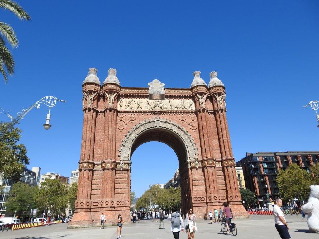 Thankfully my feet have stopped throbbing, just in time for us to walk a few thousand steps again today. There is a loose plan that involves Gaudi. However our first stop on today’s walk was the city’s own Arc de Triomf at the entrance to the Ciutadella Park. Impressive, but not as much as the Arc in Paris. We didn’t really come for the Arc though, we came to sit on Vaclav’s seat, just like we did outside our house in Prague, five weeks ago! It took a bit of finding, but my eagle eye spotted it, looking exactly the same as its partner. We sat for a while, but the day was already starting to heat up, so we opted to move along towards the harbour for some lunch and a sea breeze (and coffee).