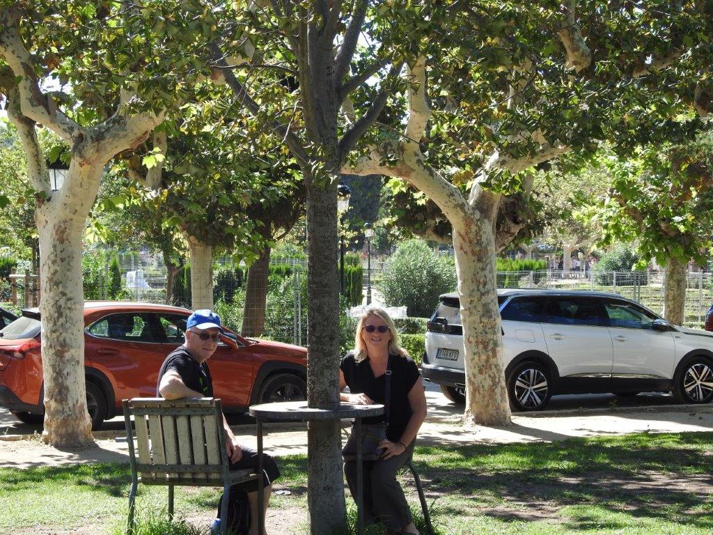 The area is now very quiet, especially where we are picking up the camper tomorrow, at a carpark not far from the stadium. After checking that out, we wandered along the top of Barcelona, enjoying the view, until we found a beer garden and a seat.