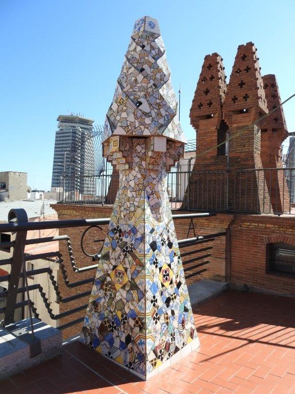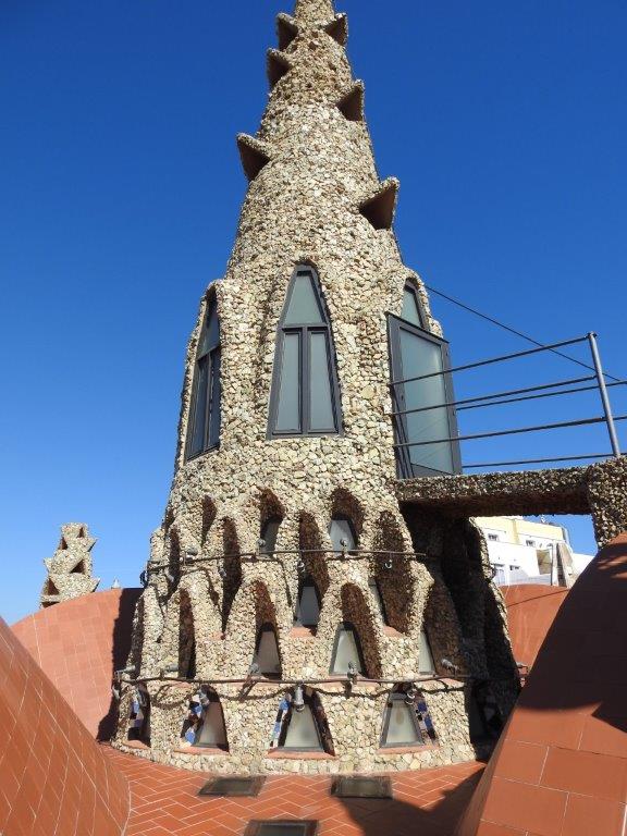 Our next stop was the Palau Guell a building designed by Gaudi, where we were able to escape the hot day wandering around with our audio tours telling the story of eccentric owners and their more eccentric designer! While it is impressive, I would have to say that Gaudi-ism is not really my thing. I love colour, but the combo of colour, light, size and shape is all too much for me. I couldn’t live there, but I can appreciate it for what it is and I loved the ingenuity of certain aspects of the build, like the arrival area for horse drawn carriages, and the stables and the way the rain water is captured for the troughs.