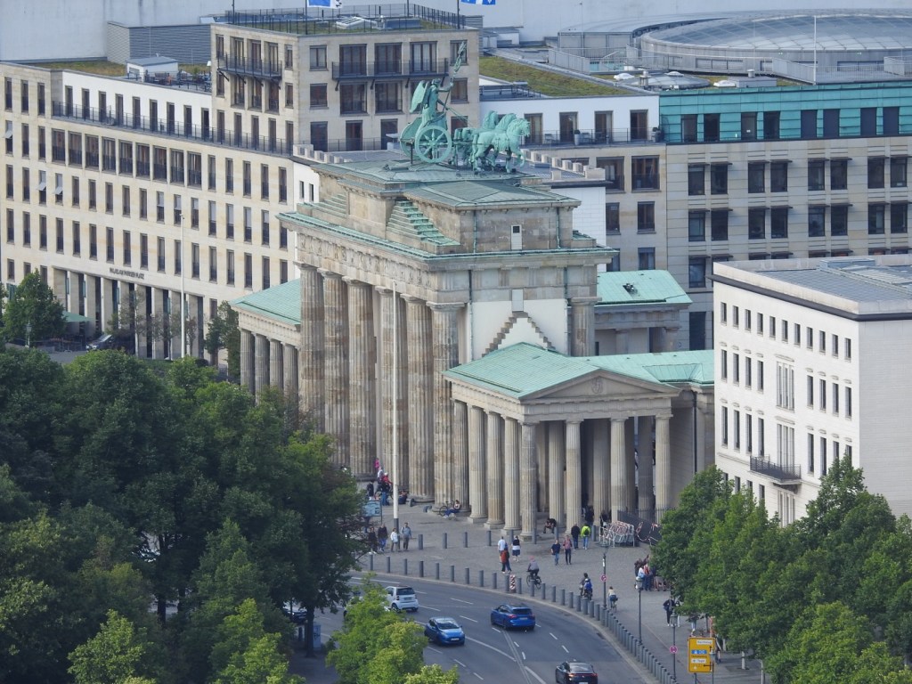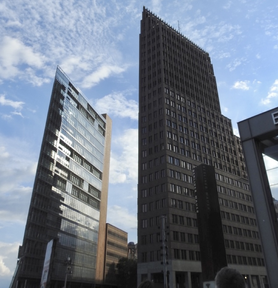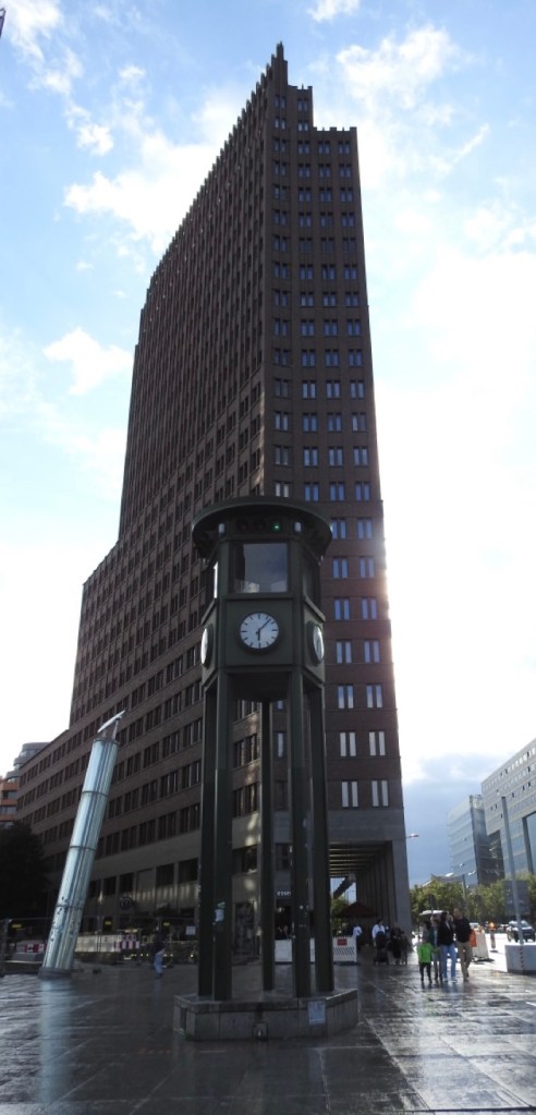 Our next stop was the Brandenburg Gate for a very very quick selfie before the heavens broke and we went running into the Adlon Hotel for a very expensive coffee. Jimmy was obviously being facetious when he said their coffee was cheap! I don’t think he was lying when he said it’s the hotel where MJ hung his son out over the balcony. Anyway, we stayed dry and hatched a plan to finish our day with an ascent at Panoramapunkt at the Kollhoff Tower. It’s become a bit of a ritual to start a city with a tour and finish it at the highest possible peak.The tower is centrally located at Potsdamer Platz, so we walked there, arriving in plenty of time.