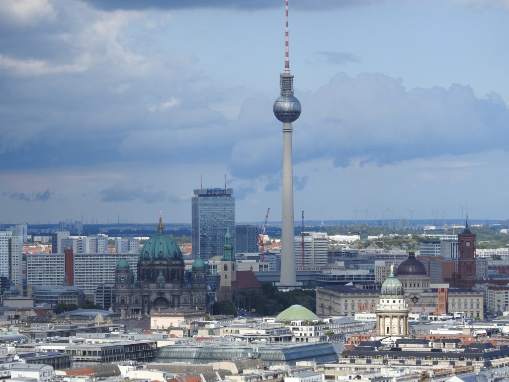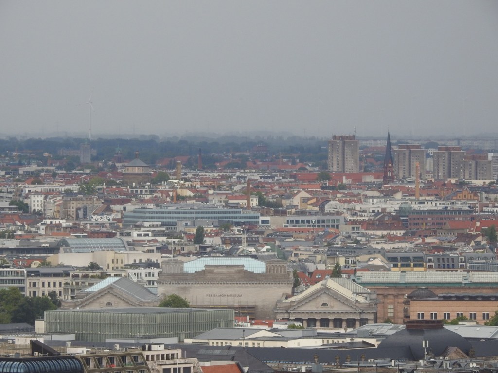The tower boasts the fastest lift in Europe, 24 seconds to ascend 90m. Scary, but I will take one for the team. At the top, we had a wonderful view across the city scape and back to “our house”, between the water tower and the church! We could also make out the Brandenburg Gate, the Berlin Cathedral, the holocaust memorial and the Reichstag building. As we wandered around, it was soon obvious there was going to be a big storm, so we found a protected spot and hung out while the thunder, lightning and rain passed over. As soon as it went, the sun came out, and with it a huge rainbow, straight over our house! A great way to end a great few days in a great city!