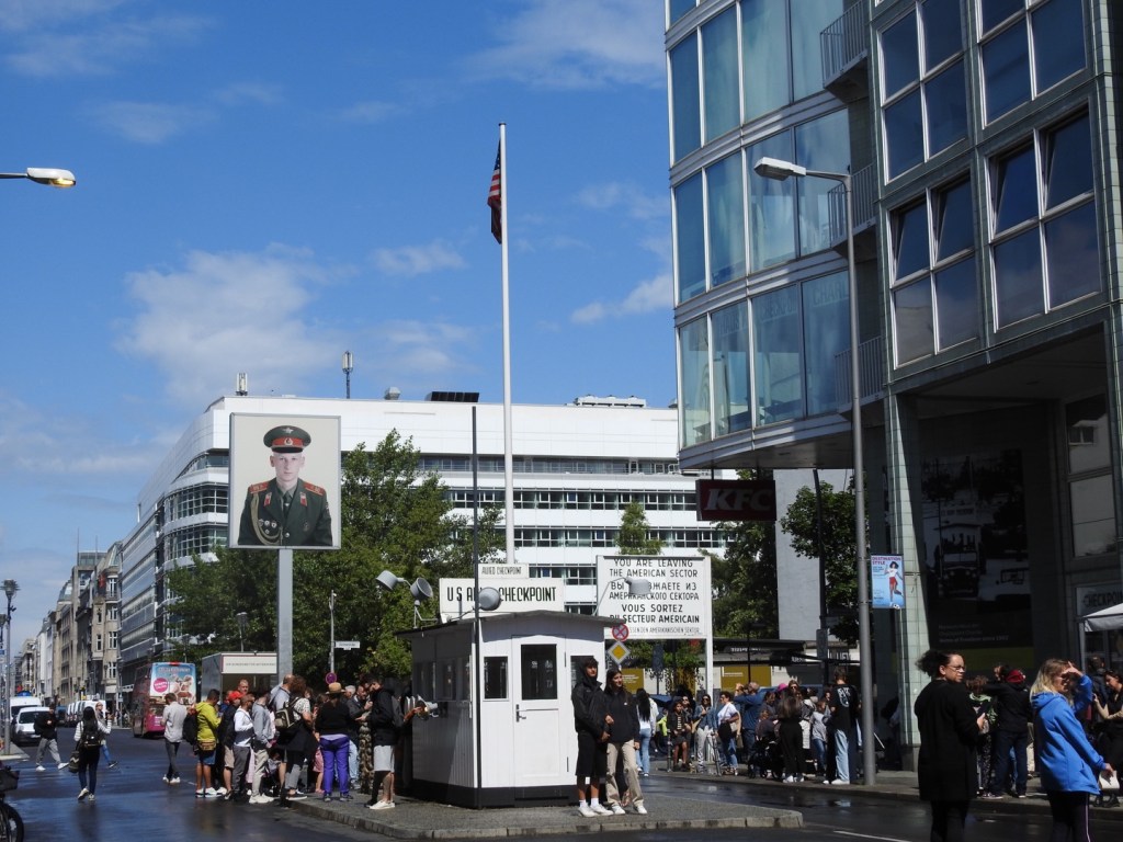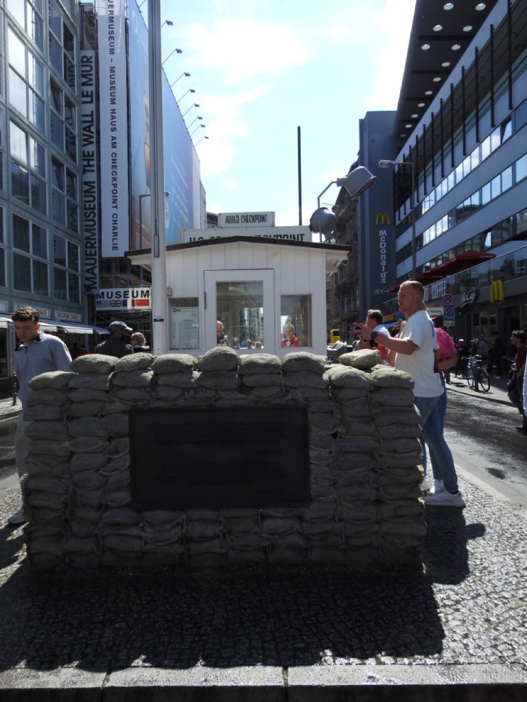 Our next stop for the day was a very quick skip past Checkpoint Charlie, just to say we have been there. It was very busy, with little chance to get a photo without a million photo bombers in it.
