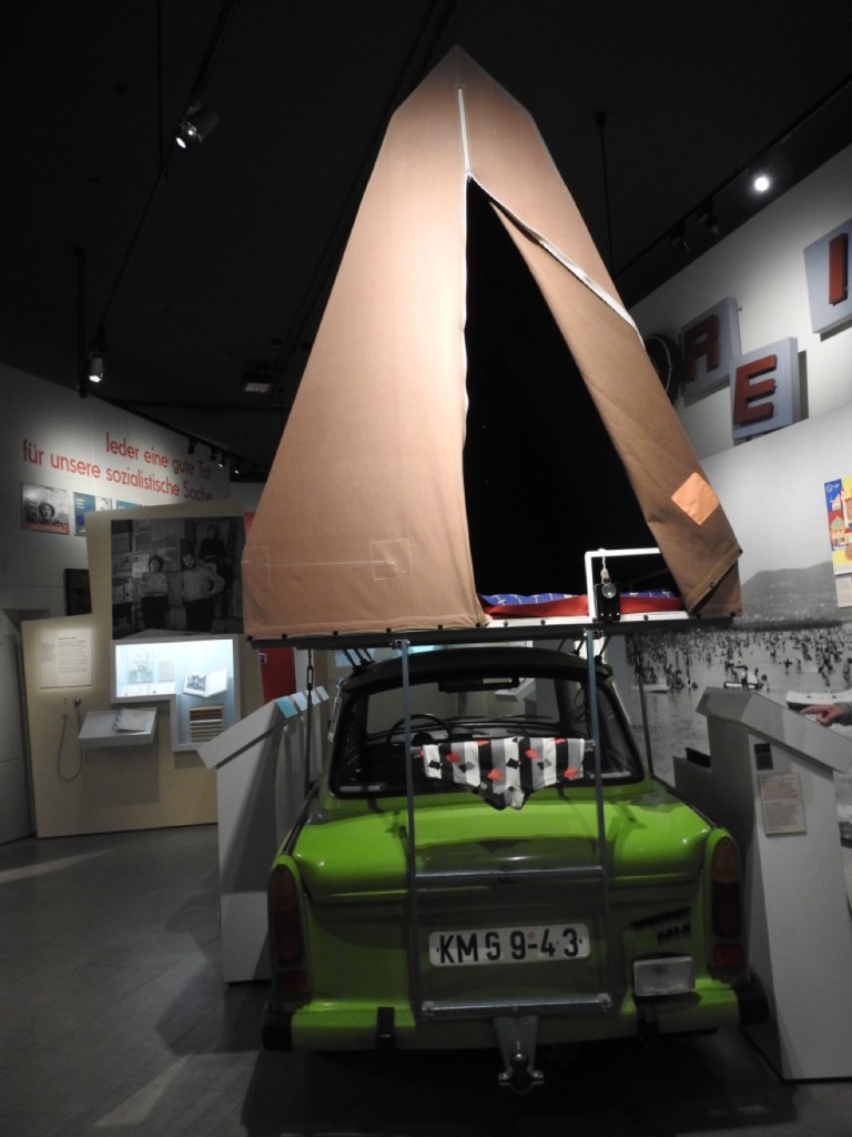 Then, factories started creating sports and other clubs, so workers worked and played in the same place, with the same people. Then they created daycare and doctors surgeries and outpatient clinics in the factories. They even had holiday sites were the best workers could apply to spend some time. Almost everything people needed was at work, a perfect place to socialise them! Then to top it all off, the things they made were exported out of East Germany! If they wanted to buy them, things like fashion or televisions, they were exorbitantly expensive. Of course this created undercurrents of discontent and we all know how this ends. But not before an ingenious inventor makes and then produces a rooftop tent for the trabant! They were that popular, he couldn’t keep up with the production requirements! The museum and its exhibits and information were excellent, free and uncrowded. We would highly recommend a visit to this excellent little museum. I’m not sure if it’s all any clearer, but I understand the chronology and events at least …