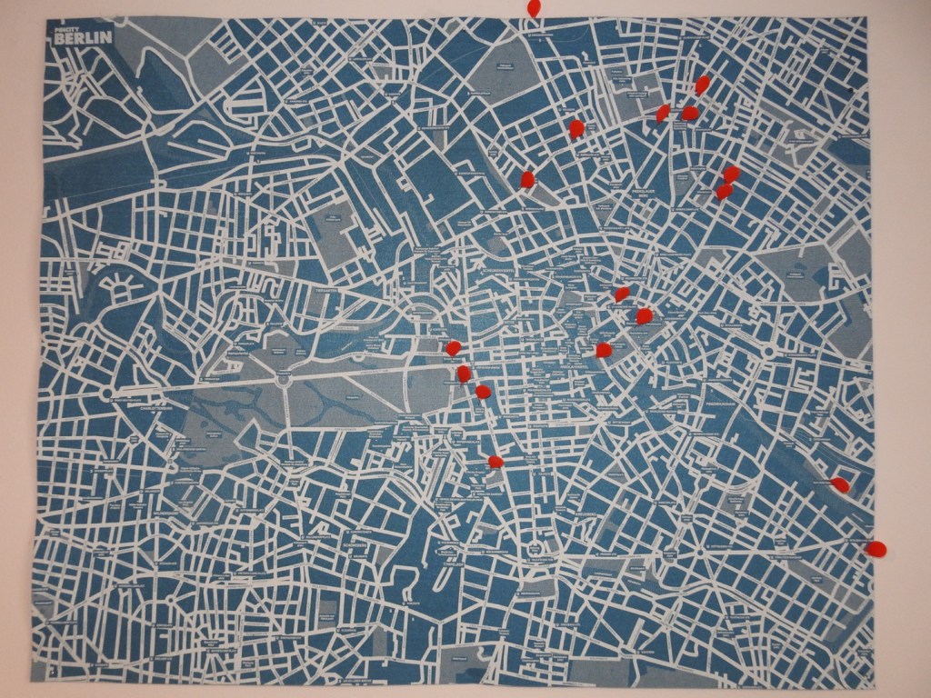 Another good night’s sleep and another day closer to being free of this lingering head cold. Overnight I’ve processed a lot of information, realising what it means to be staying in an apartment in the former East Berlin. People lived in this building, in this apartment, whose lives and movements were restricted in so many ways. Today we are heading in to the city to do a walking tour, which may answer some of the many question I have about Germany, East and West Berlin and their histories. We decided to walk from the apartment into the city, about 2 kilometres and set off about 10ish. The walk was in a straight line and took us past many communist looking buildings, the type that we saw on TV as I was growing up. So much to process. Once we were in the city, we found a big square with an old church dating back to the 1200s and largely undamaged during the war. We had a short walk around the square before we headed over for coffee that was far too expensive (minimum eftpos spend €10) and a look around the Hackescher Markt.