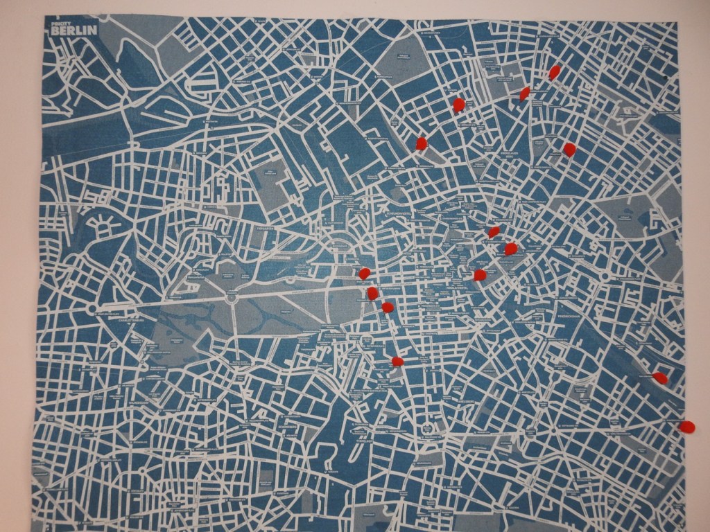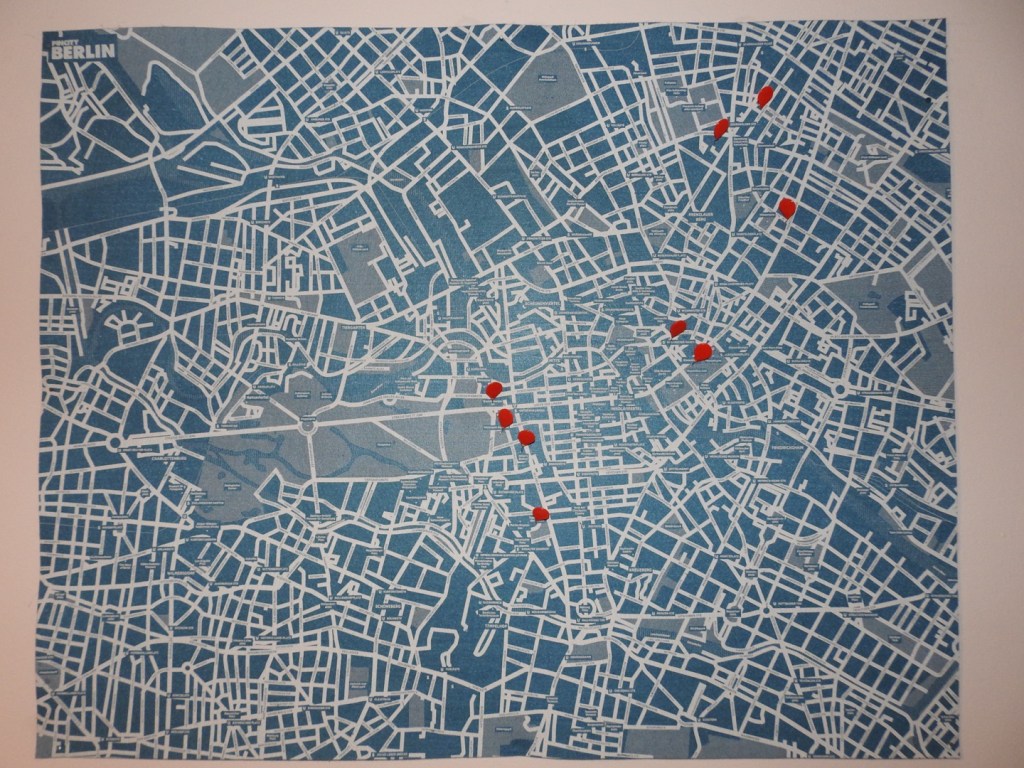 After using the facilities we headed up to the supermarket and stocked up on supplies, before putting on our walking shoes and heading out. A quick look at the map suggested there might be a few things worth seeing. So, we walked along “our street”, past Berlins oldest water tower, and around to the Kulturbrauerei (literally “Culture Brewery”). Not far from home I noticed some interesting gold coloured plaques in the cobbled footpath. The direct translation is ominous. I hope we find out what they are about and how they got there.