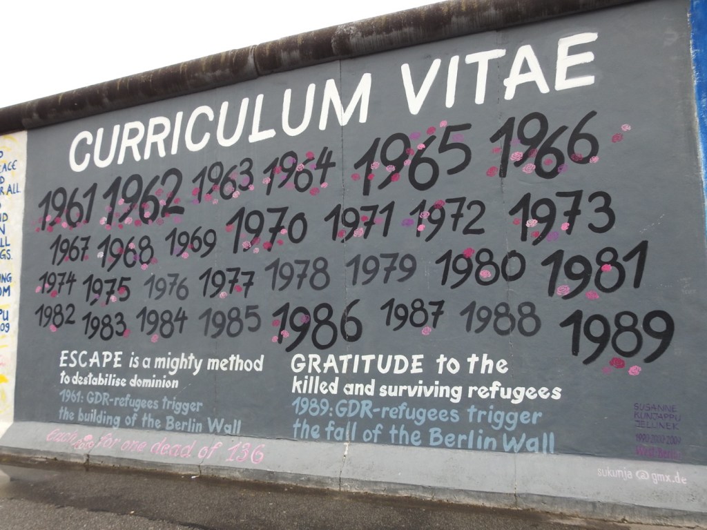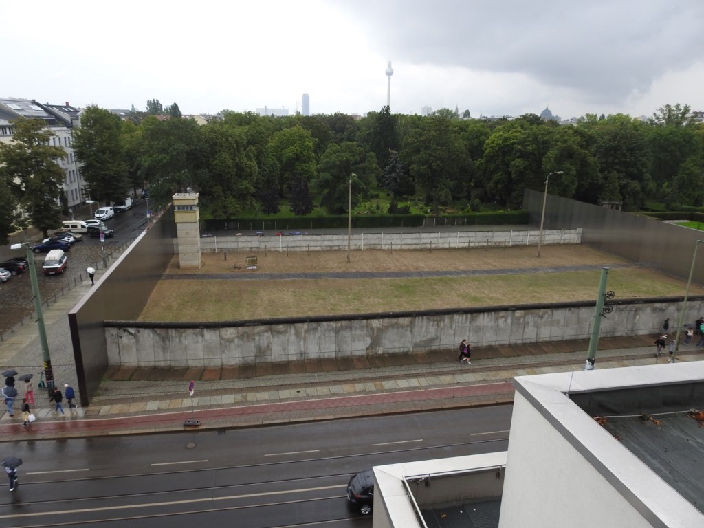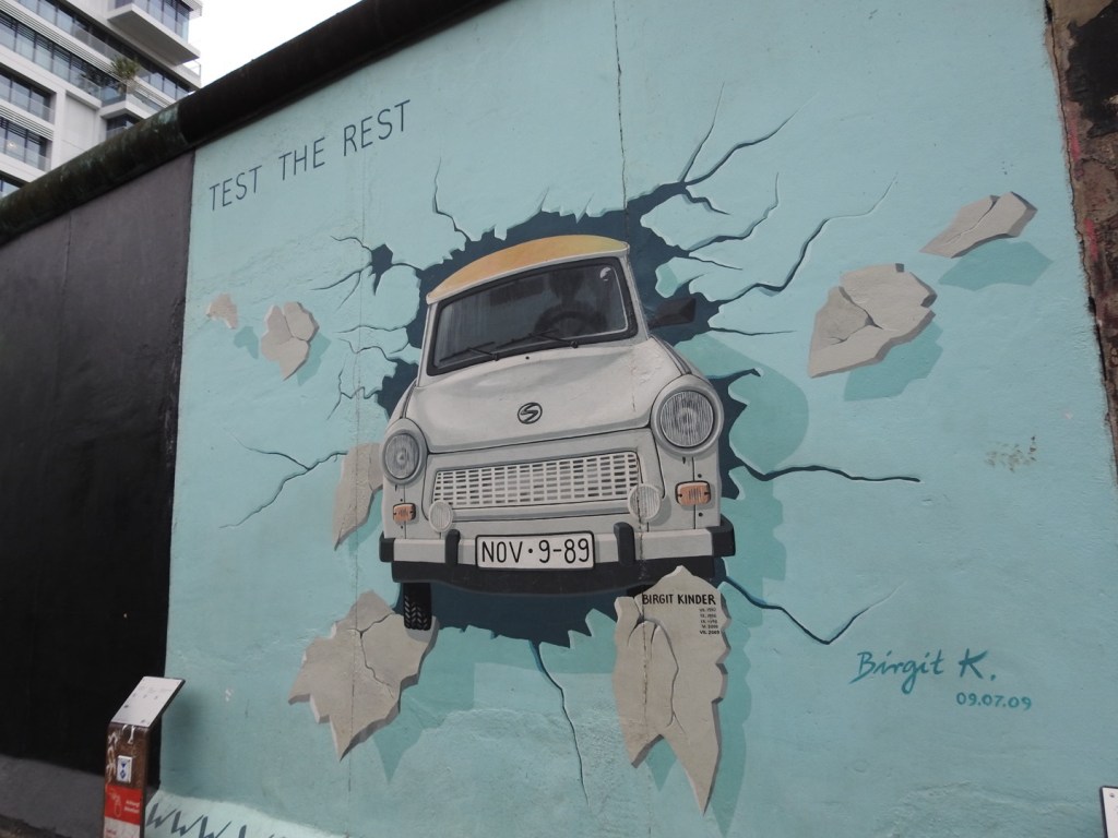 Across the road from the replica section, is a museum with some very interesting information. It also memorialises some of the people who escaped and some who lost their lives. The museum is well worth it and ends on its roof, about 4 stories up, where the visitors can look into the death zone. The museum also linked us backward to Prague and the David Cerny car sculpture in the grounds of the German embassy. Apparently East Berliners had to wait a long time to get a car, which was a Trabant, and many used them to get them to the farthest borders as they relaxed, and then abandoned their cars before going into Czechoslovakia and over the fence at the embassy. Another puzzle piece solved.