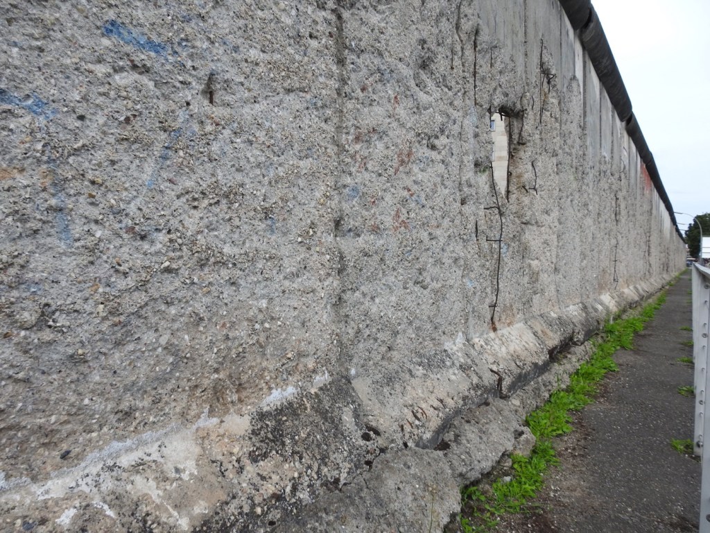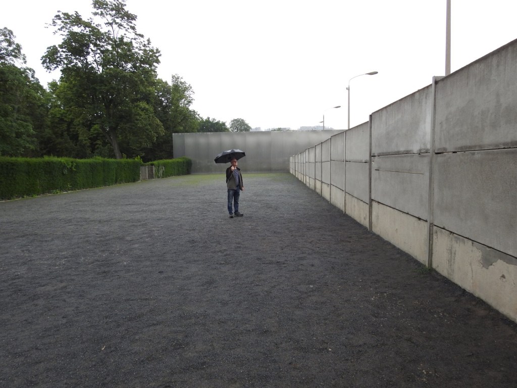 We decided to head to the outdoor Berlin Wall memorial site, so we had to get back on the train to Bernauer Strauss. The memorial encompasses an inside and an outside component. The outside component starts at the station we got out at, and finishes at what was a ghost station during the time the wall existed. We wandered along the edges of the external and internal walls in what was the death zone, observing the many replicas and information boards. It was all starting to make more (but also less) sense. I could better grasp what happened, in terms of the actual structures that went up, and how, but the senselessness of it was even more apparent. Here people died trying to flee the soviets and rejoin their families, who by virtue of a physical barrier erected while the city slept, were suddenly living in a different city! For a period of time, the external wall of the the building that some people lived in along Bernauer Strasse became the Berlin Wall, complete with a window to the west. Of course these windows and doors were quickly sealed, and the occupants were moved further into East Berlin. Eventually the building facades were completely demolished and a high outer wall with a rounded top was built, with a lower inner wall added. Between the two was the Death Zone, with trigger points, lights, guards towers and a patrol road. There is a replica section that we came upon without realising. There was no one there but us, and it gave me a huge cold shiver!
