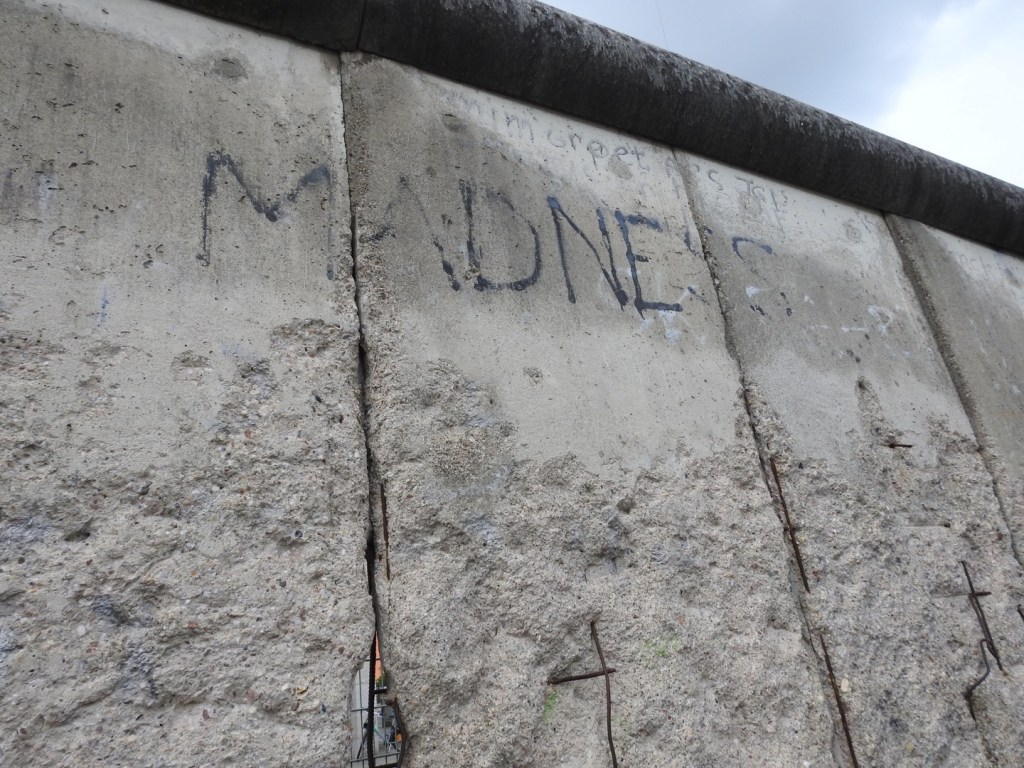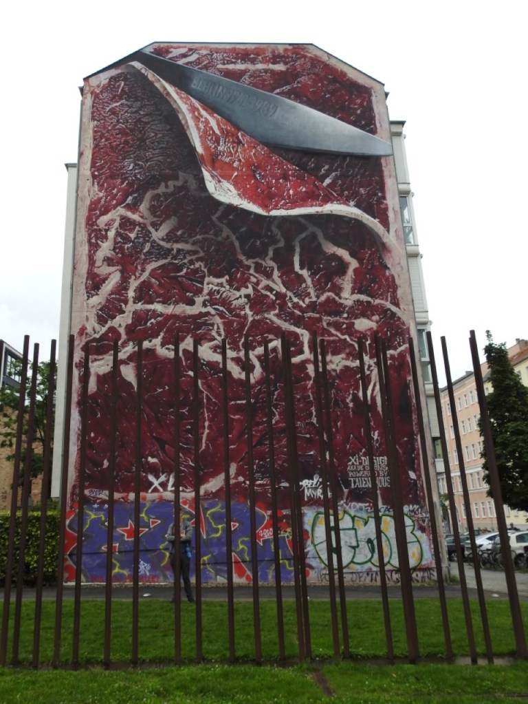 Sticking with The Wall theme for the day, he had us “back on the bus” from home and down to the East Side Gallery! It’s awesome and we walked the entire length of it. These are a few of the many paintings along it, just on the one side. At the end I got a bit confused because for this section of the wall, they swapped the shorter and higher walls around. So the artwork is on the outer, lower wall, where everywhere else the outer wall was higher. Here the river also acted as a barrier to escape! Time for something to eat and a beer!