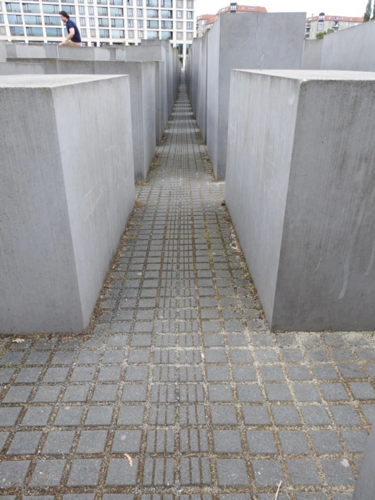 Around the corner from the wall we entered the Memorial to the Murdered Jews of Europe. It’s a strange, eerie place, that has the desired effect. By the time we wandered through it, I had time to feel disorientated, confused, trapped, alone, dismal, but also I emerged I felt hopeful. The artist says nothing about it, leaving it to the visitor to interpret. I think it’s a good use of this entire block. I think we will see and hear more about the murdered Jews of Europe. On the block diagonally opposite the memorial is another very historic site, a dirty, unpaved, uneven, semi-occupied car park, for some old communist apartments, one of which hosts a bubble tea shop. The carpark is the site of Hitlers bunker and the accomodation with the bubble tea shop is the site of his headquarters. If there’s one thing for sure, it’s that there’s nowhere here for neo Nazis to immortalise or glorify Hitler!