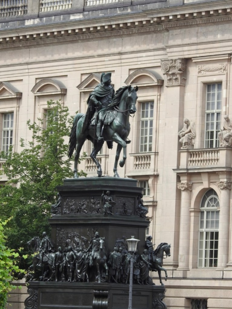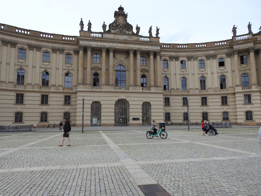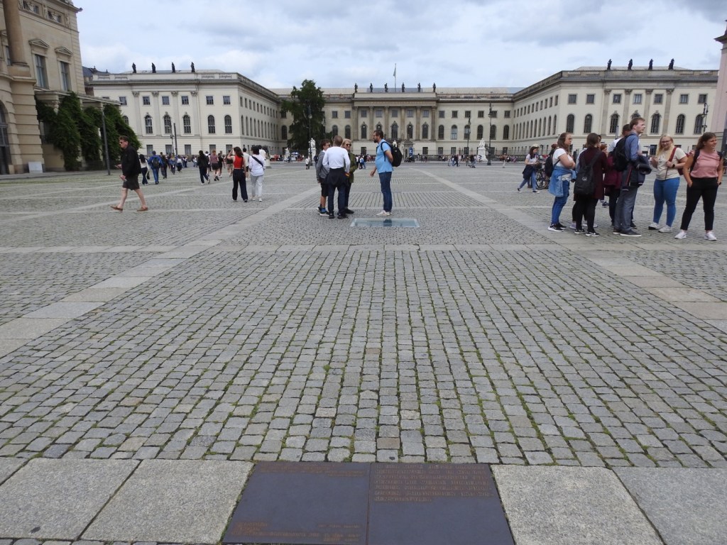 The next stop on the tour was the Bebelplatz. Here Jimmy kept up his description of the history of Berlin, with us up to the bit that sees Jews and others start to be persecuted by the Nazis. We stood in the very spot where all the books were brought to and burned. They burned books! We also heard all about Fredrick the Great and his life and influence on the city. Poor fellow would not have survived Nazi Germany (he was gay), but would be well accepted now!