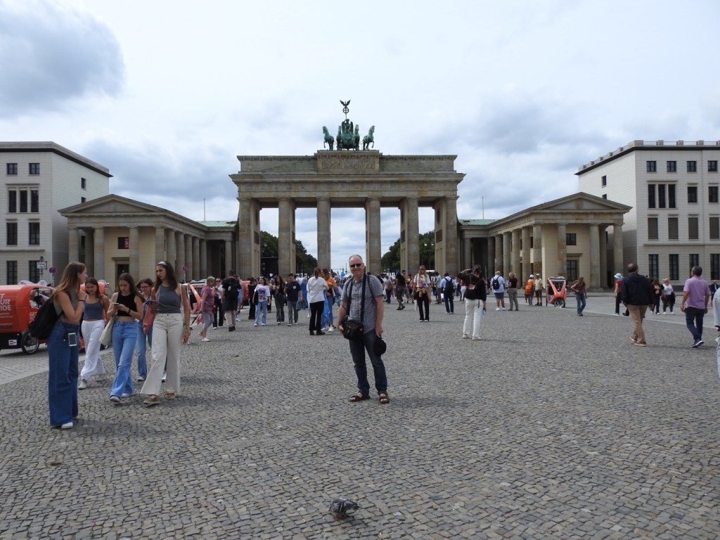 Onwards, our next non-stop was past the Russian embassy! It’s huge and obviously flies the Russian flag. We were advised not to overtly photograph it (but who wants to anyway?). I have to wonder who works there? Surely they are all Russians, brought here and possibly even living within the walls of the embassy. A little irony there if that is what is happening! The embassy is close to the Pariser Platz, the home of the American and French embassies as well as the Brandenburger Tor, the Brandenburg Gate. A good spot to grab a drink, take a rest and watch the world go by. It seems the gate is the place to protest. There were at least 3 underway as we were there, one for Falung Gong, one for Assange and another attracting much police attention. It’s amazing to think that Napoleon rode through that gate! It’s also amazing to think that it sat alone in the death strip for the 28 years of the wall’s existence. It’s one of those places you could never get all to yourself, unless it sat in the death strip or it was COVID times. We shared it with a squillion other folk and a pigeon.