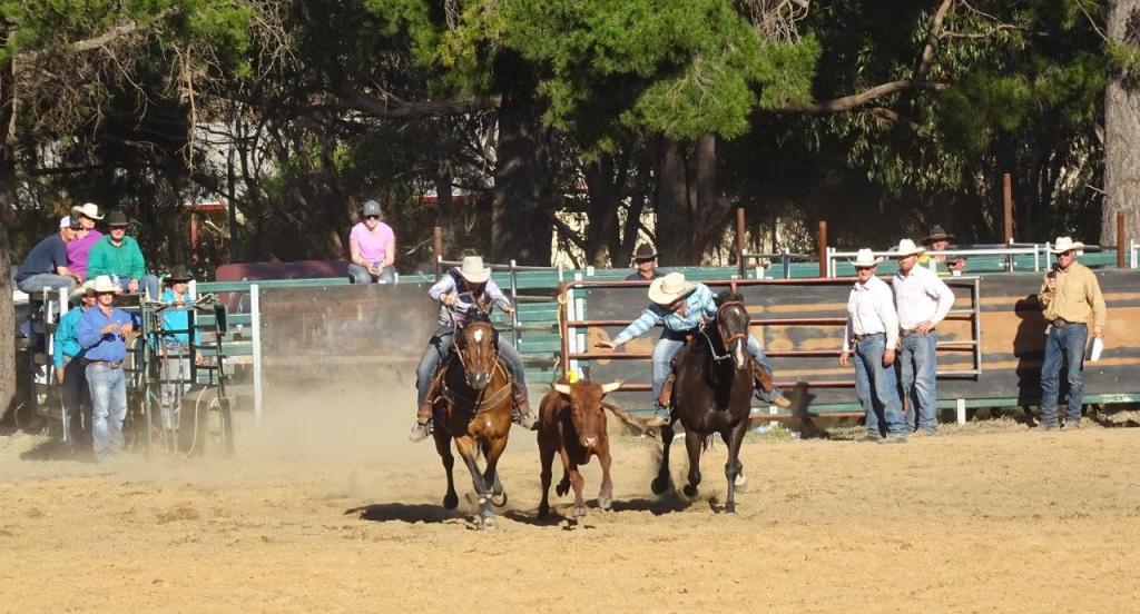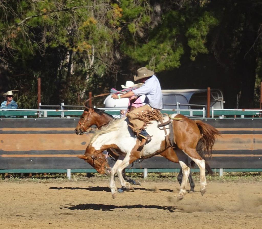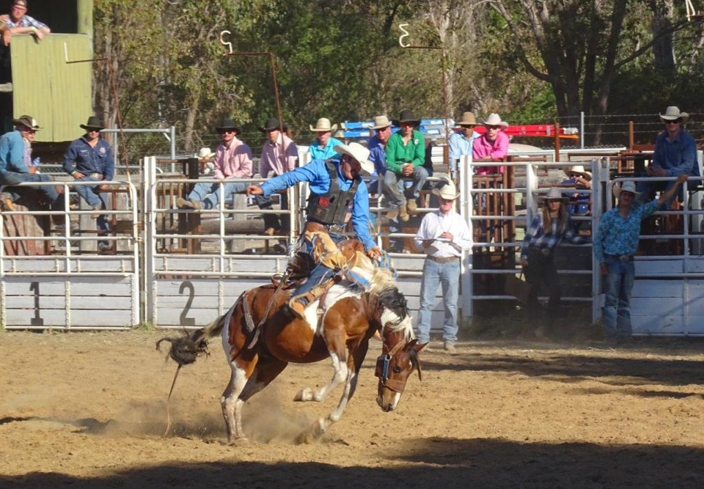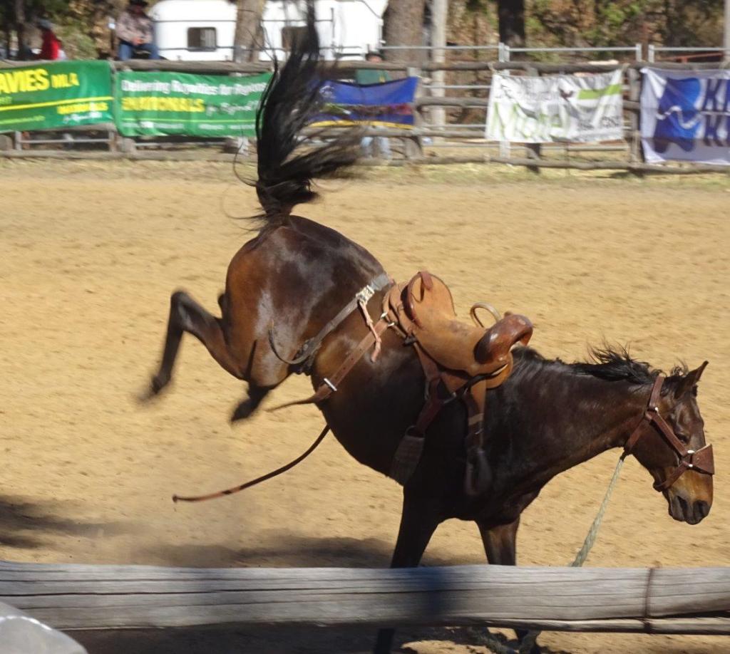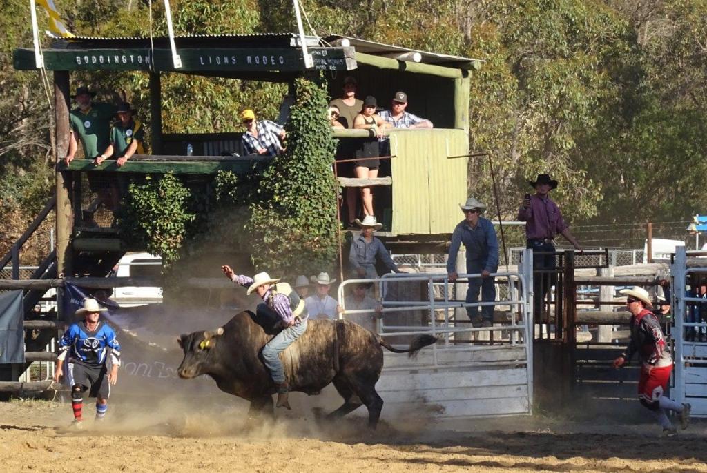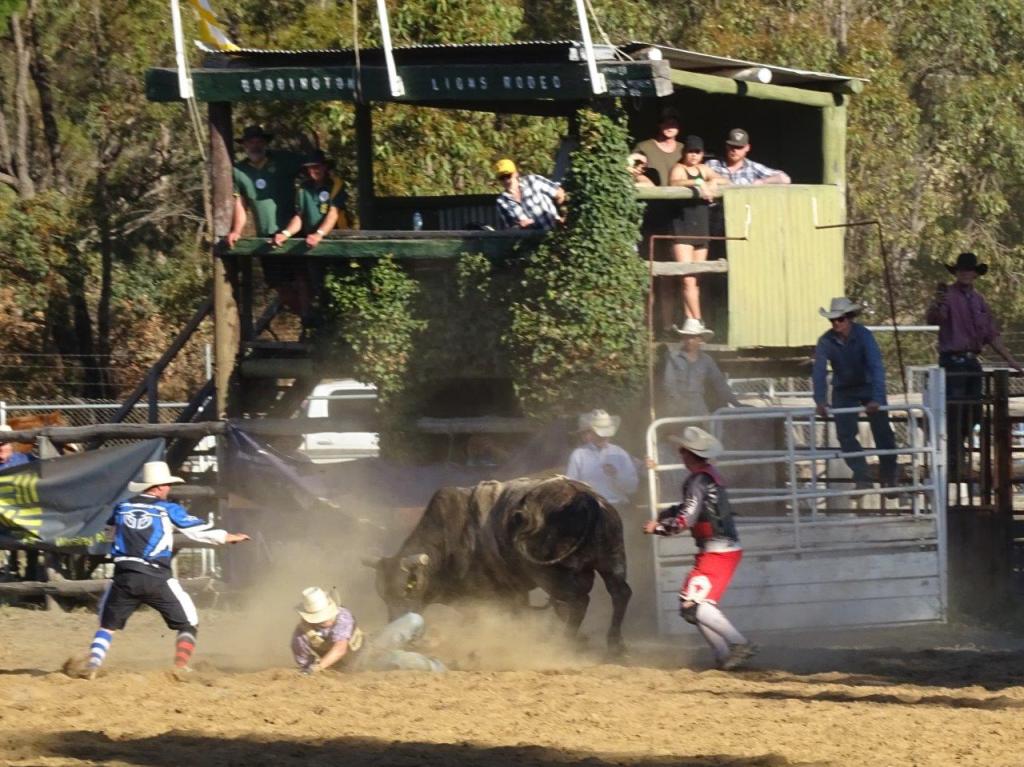Post lunch we wandered back for the main event; an afternoon of dirt, dust and heat watching cowboys and cowgirls ride horses and bulls. “I’ll tell you what” the action was fantastic from our vantage point in the shade on the crest of the hill, just to the right of the gates. The Newby’s favourite event was the barrel racing that was almost spoilt by a dramatic fall. The rider was doing a good job of holding the horse at the start, walking it backwards, when it reared and fell sideways onto her. She was completely covered by the horse, which appeared unable to get up. It was a very nerve wracking wait while every person in the arena ran to the action, right in front of us, and dragged the horse off of her. She emerged apparently unscathed, calmed her now standing horse, mounted and rode the event to the cheers of the crowd. One very brave lady.