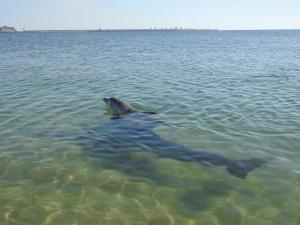 We had of course heard about the Koombana Bay dolphins and have seen them many times at Turkey Point, so we decided to try our luck doing the free morning experience. We wandered over with coffee in hand and as we arrived the dolphins also surfaced. We were so lucky to stand in knee deep water as they circled past us numerous times. There were 2, a mummy with her darling baby! I was absolutely thrilled and this experience is as good as the one at Monkey Mia. They stayed long enough for a really good look, before drifting away to the north. What a great way to wake up to to a new day!!! If you want to do this, just front up to beach outside the Dolphin Centre in the morning and you’ll see the volunteers waiting there to host your experience.