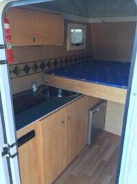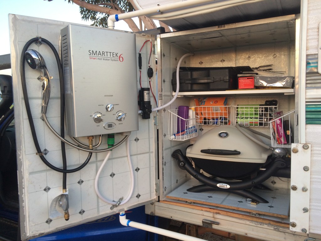 - a hot water service with shower housed in our combined (kerbside) kitchen and bathroom lock box with