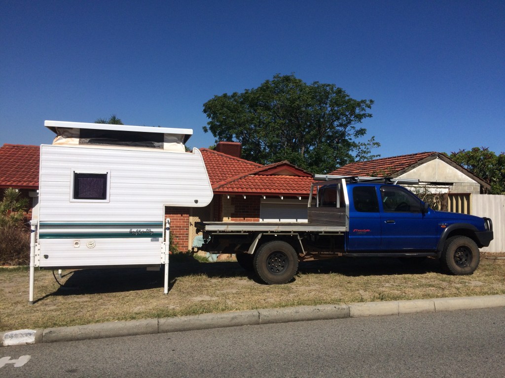 There are so many available but the key consideration, as we found out, is their weight. This is important so that the chassis and engine are capable of holding and moving the final setup. So with that in mind we started looking for a light weight camper in WA. It’s safe to say there is almost nothing available and what is around didn’t suit us. We tentatively widened the search, not sure how we would retrieve a camper from beyond the metro area, and found a 2016 model 5th Avenue, Infinity for sale in Ballarat, Victoria. Regional Victoria to Perth metro. I don’t think it could get any more difficult! But the more we looked at it, the more we liked it despite the rear door, pop top and folding double bed. So we made enquiries, sent an old friend around to have a look on our behalf, organised transportation and took delivery of our new camper. I made that sound easier than it was but it’s here now and we have had our first nervous but successful trip and we couldn’t be happier. As I always say, it doesn’t matter how you do it, just make sure you are getting out there!