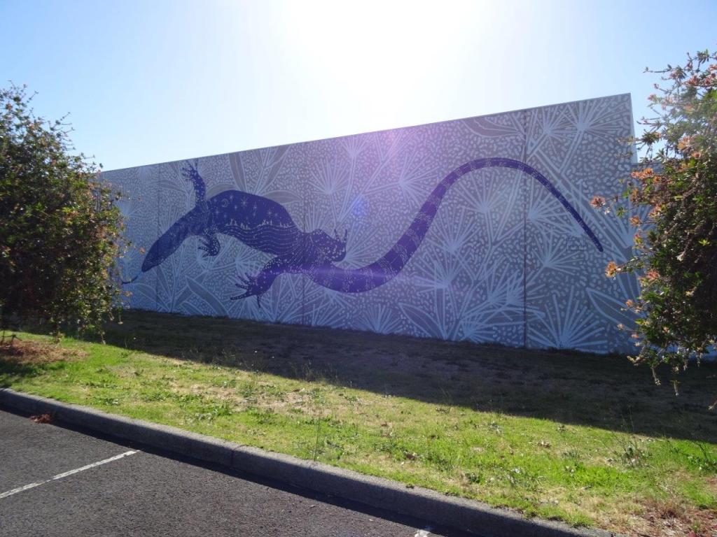 Number 7 in reconciliation park. Part of number 8 … … more of number 8. Number 11Number 20Number 30, inside the Goods ShedNumber 34Number 35 @ the library. One for The DrummerNumber 37. I LOVE this mural. It’s called Kwobidak koondarm which means beautiful dreams, named by the parents of the three sisters painted in the mural.Number 38Number 40. Mr P’s new favouriteNumber 41. The detail in his face is only visible through the camera lensNumber 42 represents the Ngangungudditj Walgu (hairy faced snake) who is the creator of the pools and waterways around Collie … .. . appropriately adorning the steps of the community swimming pool