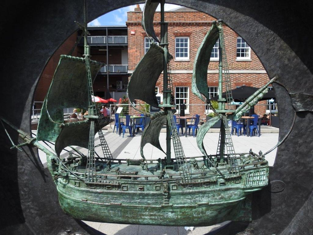 With the game over, we restarted our wander of Portsmouth, watching the hovercraft head backwards and forwards to the Isle of Wight. If we had more time (and money) we could have planned a trip over there. We’ll definitely add that to the next-time-we-are-in-Portsmouth list. Further along the sea front, towards town, we got to the pier, then admired the view of the Spinnaker from Spice Island.