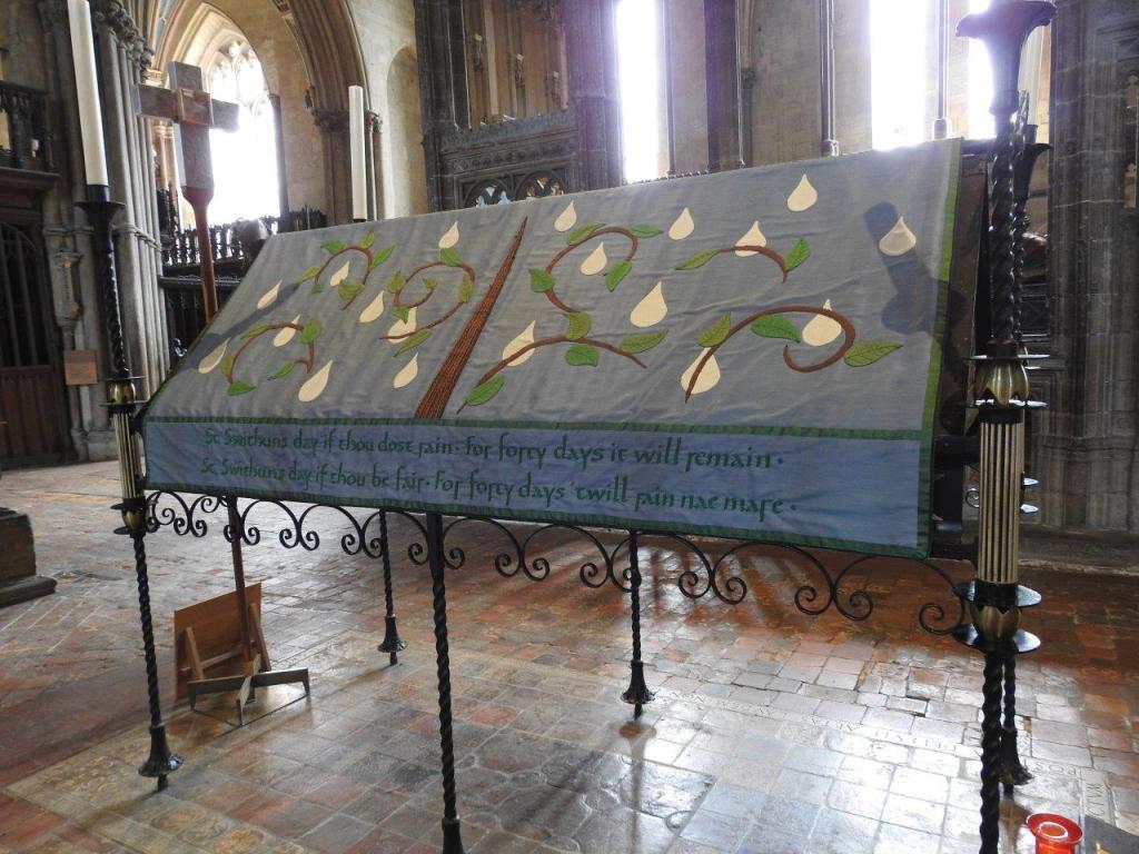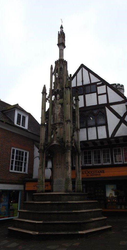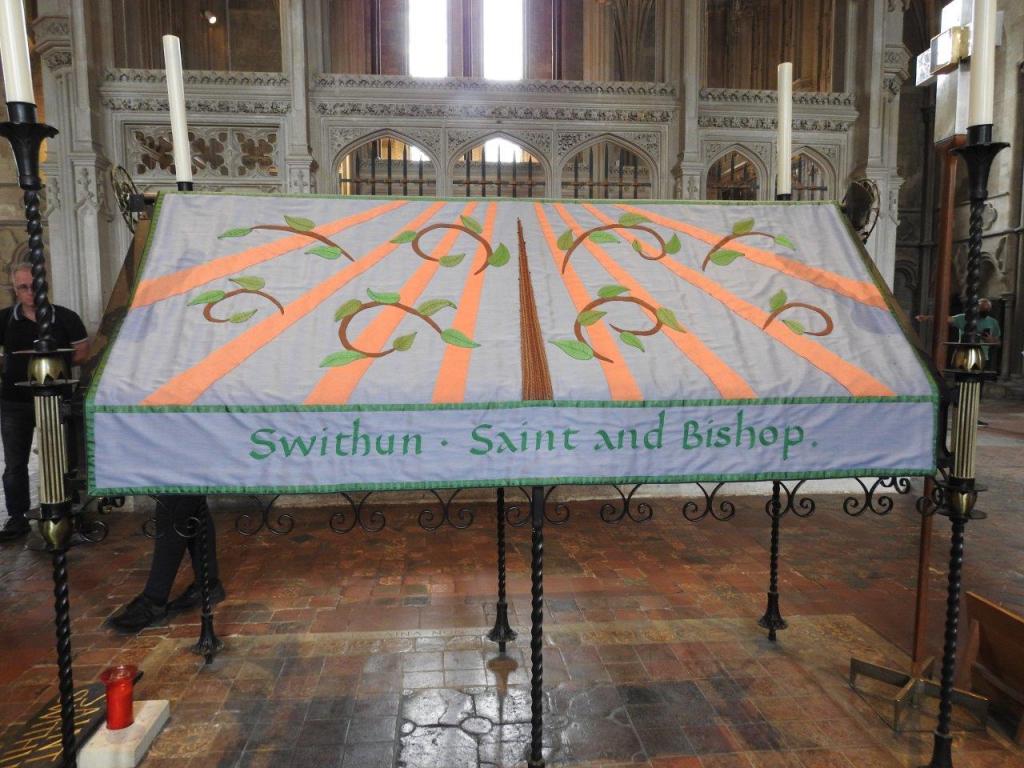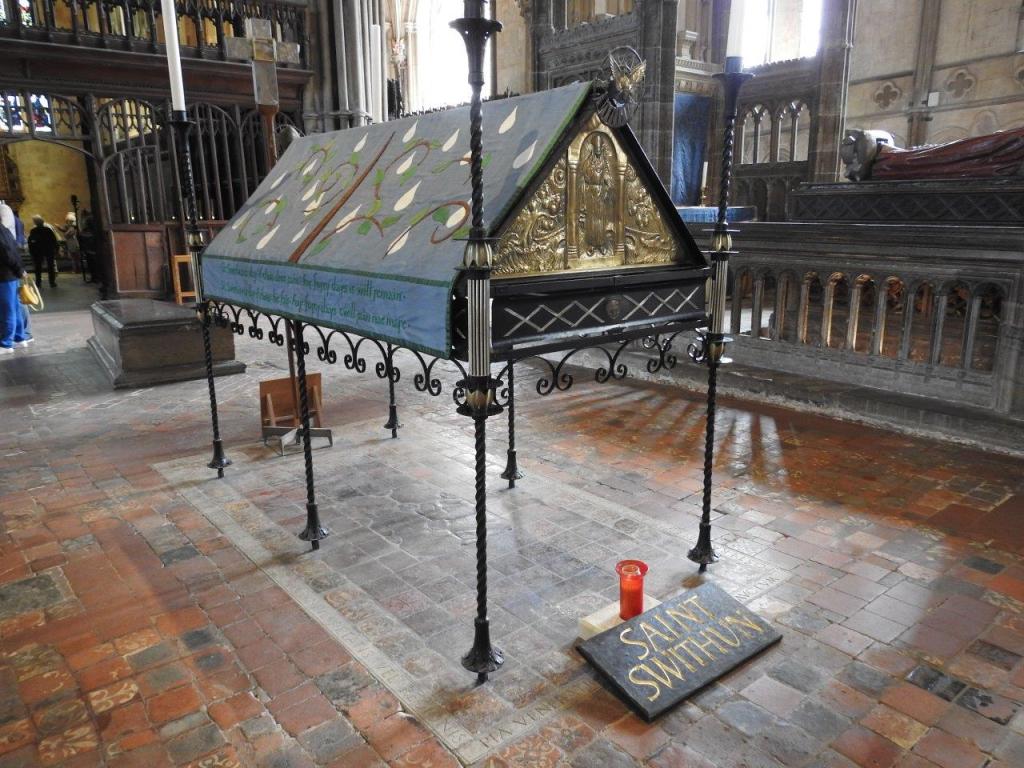 After replenishing the tanks, we moved the car to a more suitable spot and wandered back into town, finding the lovely little St Swithun-upon-Kingsgate church. It has a very peculiar spot, partly built into an arch (hence the Kingsgate part of its name) and partly in a normal building. As a result, there are stairs to climb into the church, which was welcomingly open, with information about its history available to read. Apparently its very well known that St Swithun’s day, if then dost rain, For forty days it will remain, St Swithun’s day, if then be fair, For forty days ’twill rain no more. For the record, St Swithun’s Day is bang in the middle of the English summer, the 15th July. I wonder what the weather records show for rain on the 15th July, and the forty days that follow it, since the 10th century when St Swithun died? Poor fellow. Fancy being held responsible for England’s poor weather year after year!