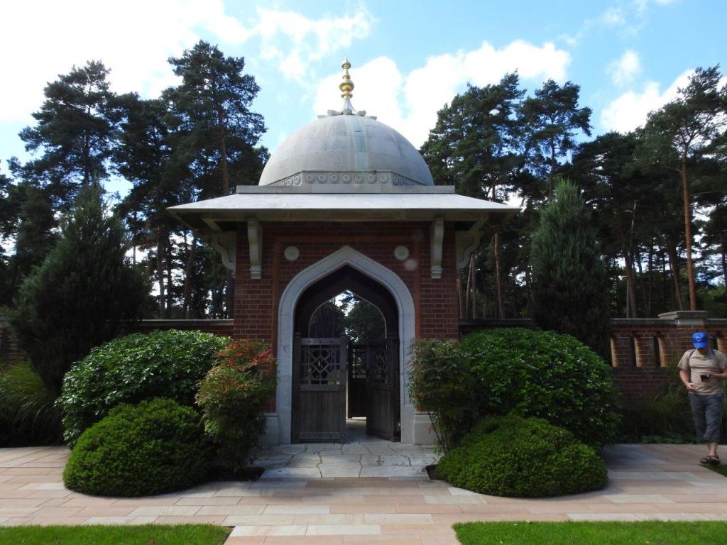 We started with a squizz at the house HG Wells stayed in. I guess he romped all over the common as he was percolating the story line and realised that Horsell Common was the perfect setting for the Martian landing. From his house we doubled back to the main road and onto the start of the Common. Although not related, the tour directed us into the Muslim Burial Ground and Peace Garden, now a memorial garden to fallen British soldiers of Muslim faith, but formerly (for a while) their resting place! It’s a nice place for a bit of reflection, with touches that reflect the Muslim faith, and a well-established garden. It must be pretty in springtime.