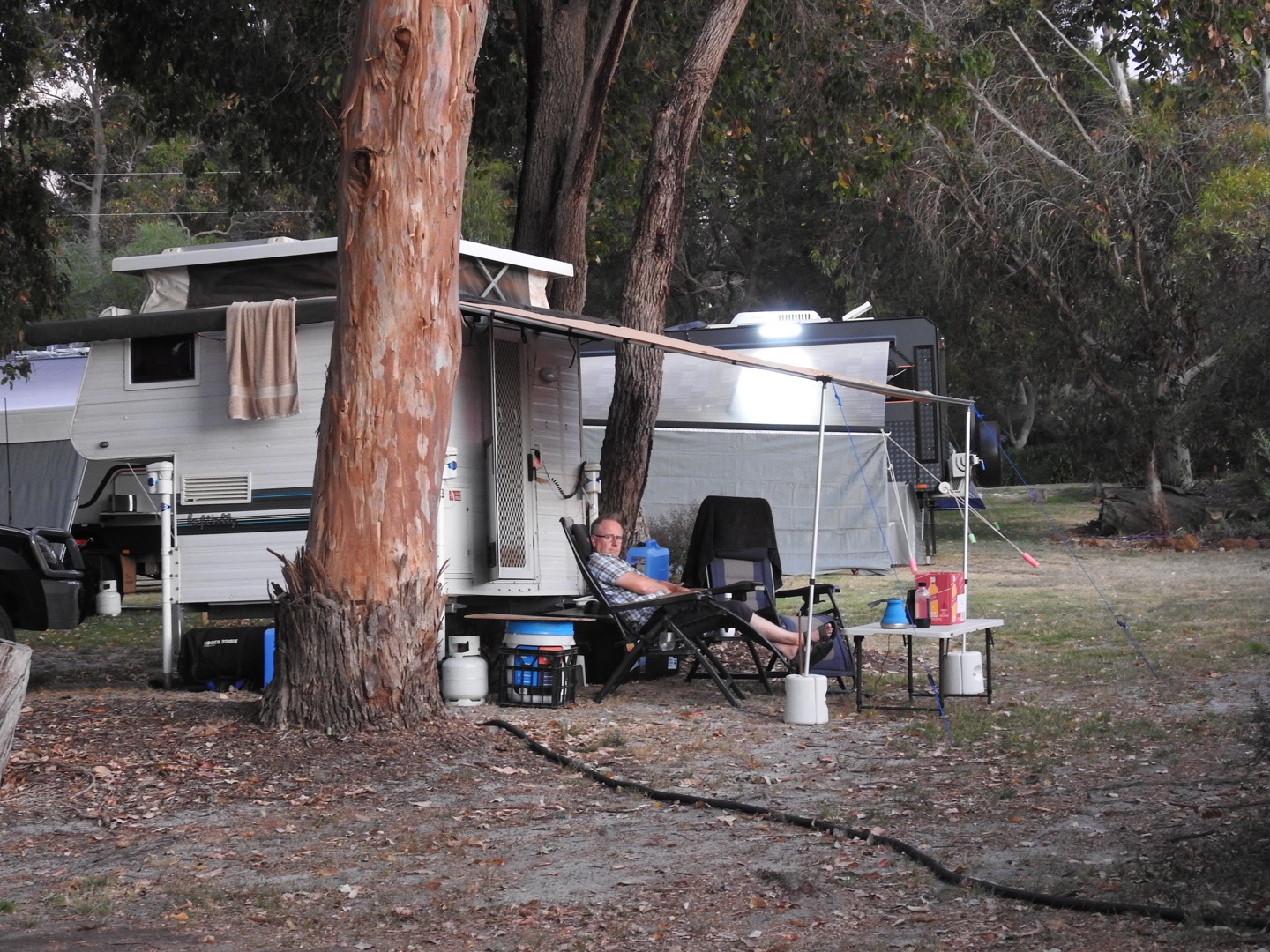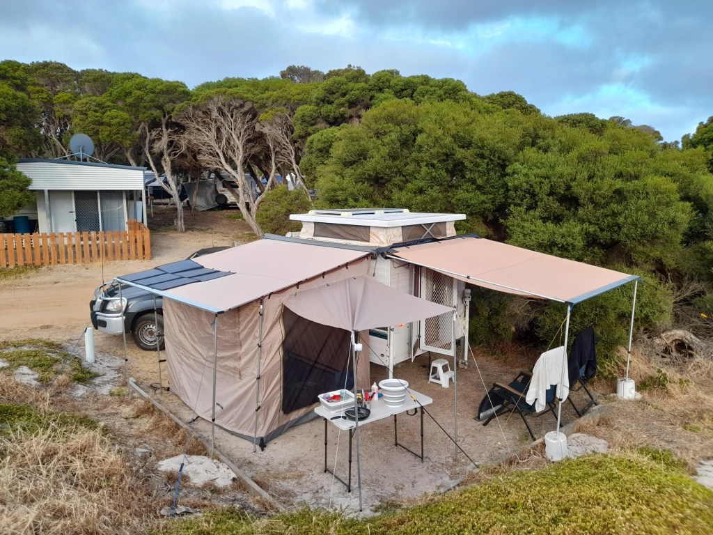 So, we found ourselves back in Collie, needing to get online and try to find somewhere to stay, in peak holiday time, when everyone is home in WA thanks to covid. Mr P eventually found us a site at Myalup Beach. So we headed along the road and here we are, comfortably set up on our little site. This place gets 2 stars on WikiCamps but we are very happy. We are wondering what that says about us, but at the moment beggars can’t be choosers! This afternoon we did manage to fit in a walk to the beach and the lookout, before a quiet evening. For a while there, it looked like 2022 was biting us from day 1, but Mr P saved the holiday. I am always happy at the beach, so yahoo 2022! From now on when something seems worse than it is we are going to say “well, we could be at Ruben’s place”. Or when something is truly amazing we will say “just think, we could have been at Ruben’s place”.