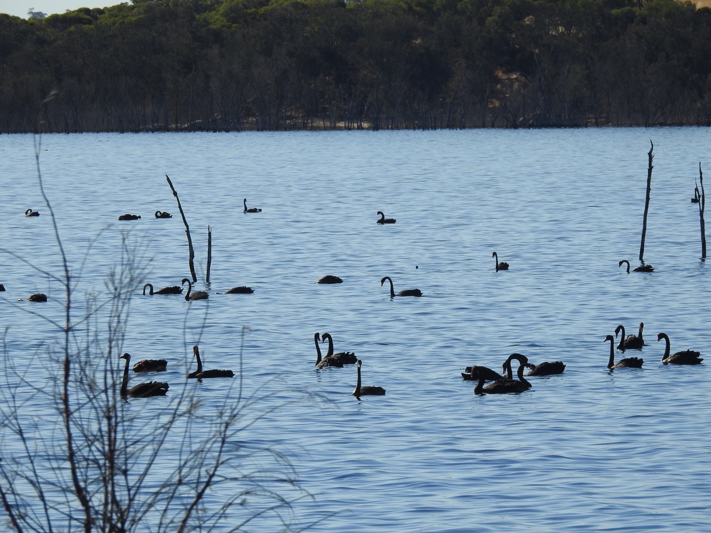 The other great thing about the lake was the birds. We spent ages sitting in Maz watching the water and the swans. There must have literally been thousands of them, along with ducks, magpies, Willie wagtails, ring necks parrots and others. We had it to ourselves and thoroughly enjoyed it, parked up at the Yacht club, on the end of the boat ramp. Eventually we left though and headed here to town for a meal at the pub and a restful night in the camper.