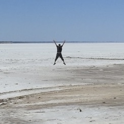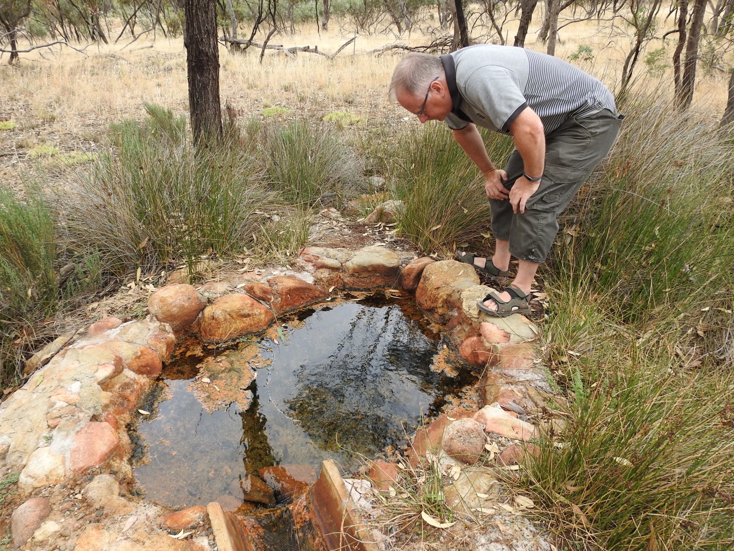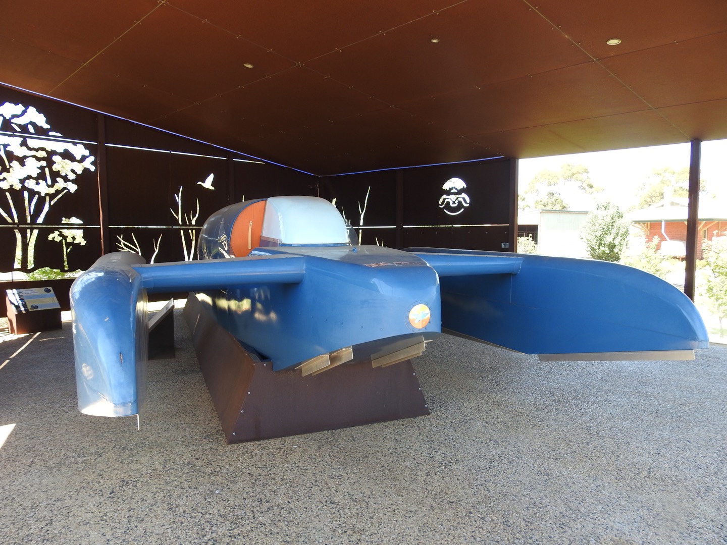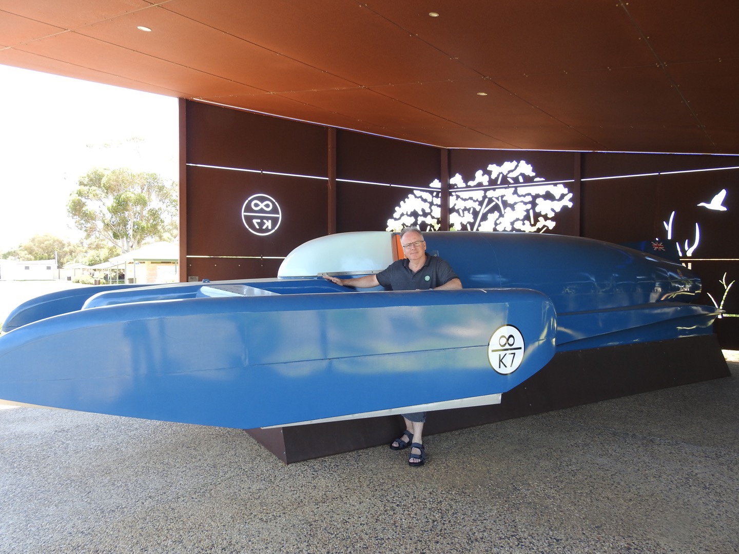 We spent a couple of hours here enjoying the history of Sir Donald Campbell and the birds. Sir Donald broke the land speed record in 1964 and wanted to break the water speed record as well, in the same year, and be the only person to break both in the same year. He tried to get the water record somewhere in South Australia but the conditions didn’t suit. Then someone said Lake Dumbleyung. So he, his crew, a local cast of thousands and some hangers on, high tailed it here. He had a week to get the record in Bluebird, the craft designed for the job. But each day proved too windy, with some days producing waves on the lake! Just when it looked like it wouldn’t happen, on New Year’s Eve the conditions calmed and he started the beast, roared across the lake and broke the water speed record! What a story for a little place in the middle of nowhere. Of course the town revolves around the story now with a replica Bluebell, a statue of Sir Donald, a room in the pub full of memorabilia, and a mini museum of stuff.