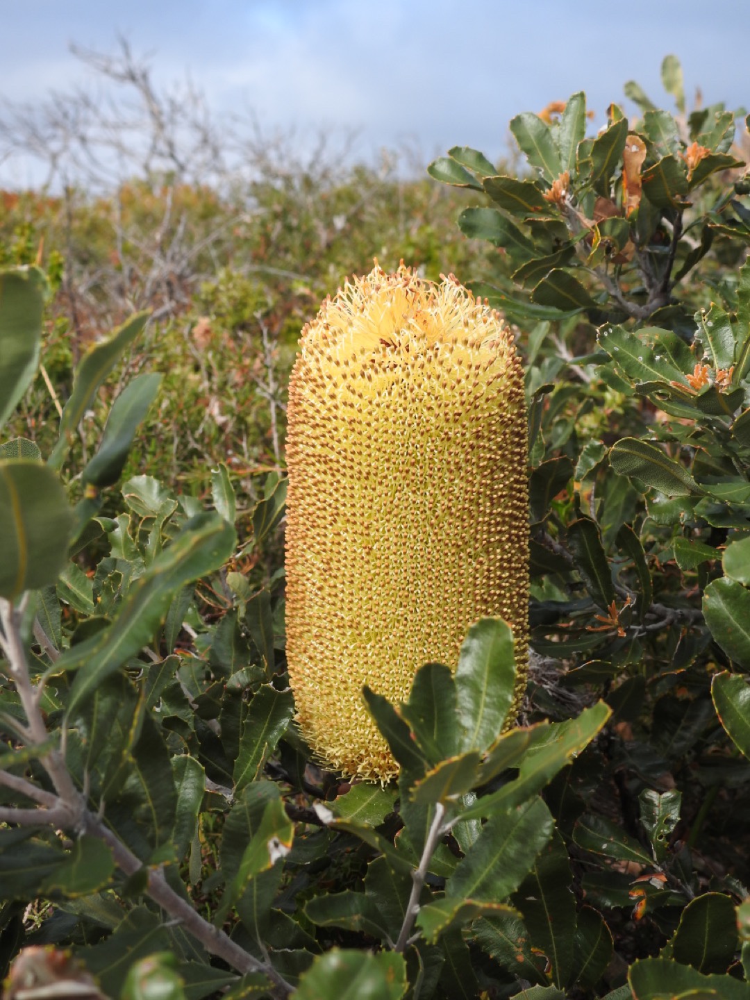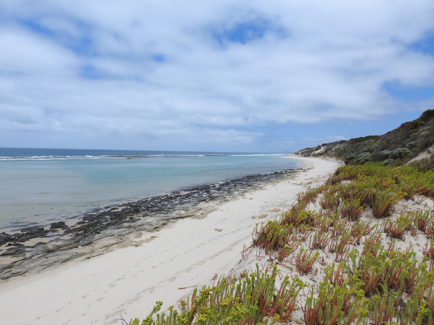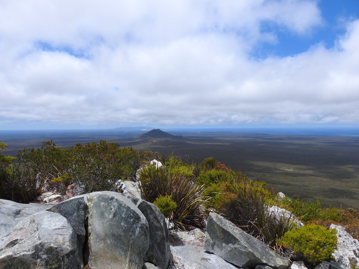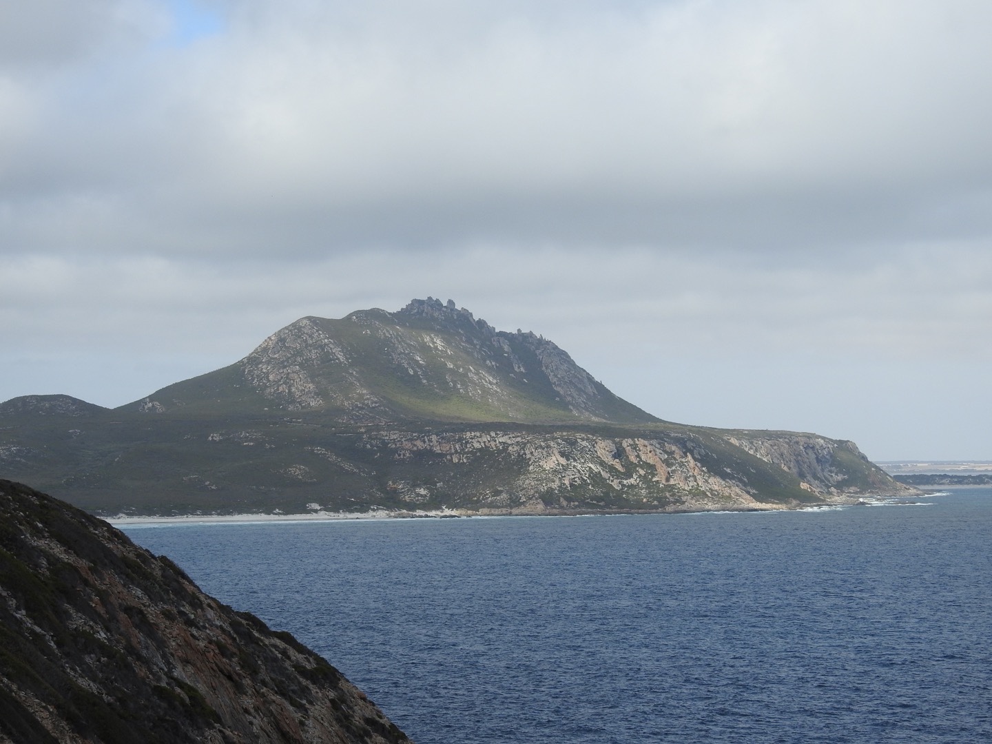 Having rested for a while we started our descent. As always I found the going down far harder than the going up but my walking poles were once again a great asset. What was a rocky walk up was a treacherous ball bearing style balancing act on the way down. But we did it, conquering East Mount Barren on a great day. At the bottom we spent a while admiring the banksia and congratulating ourselves on our achievement. The rest of our day was spent cruising along the coast to the west sussing out the beaches, Cave Point and Hamersley Inlet camp ground. Thanks to the overcast day we didn’t swim in the Southern Ocean but there is time enough for that.