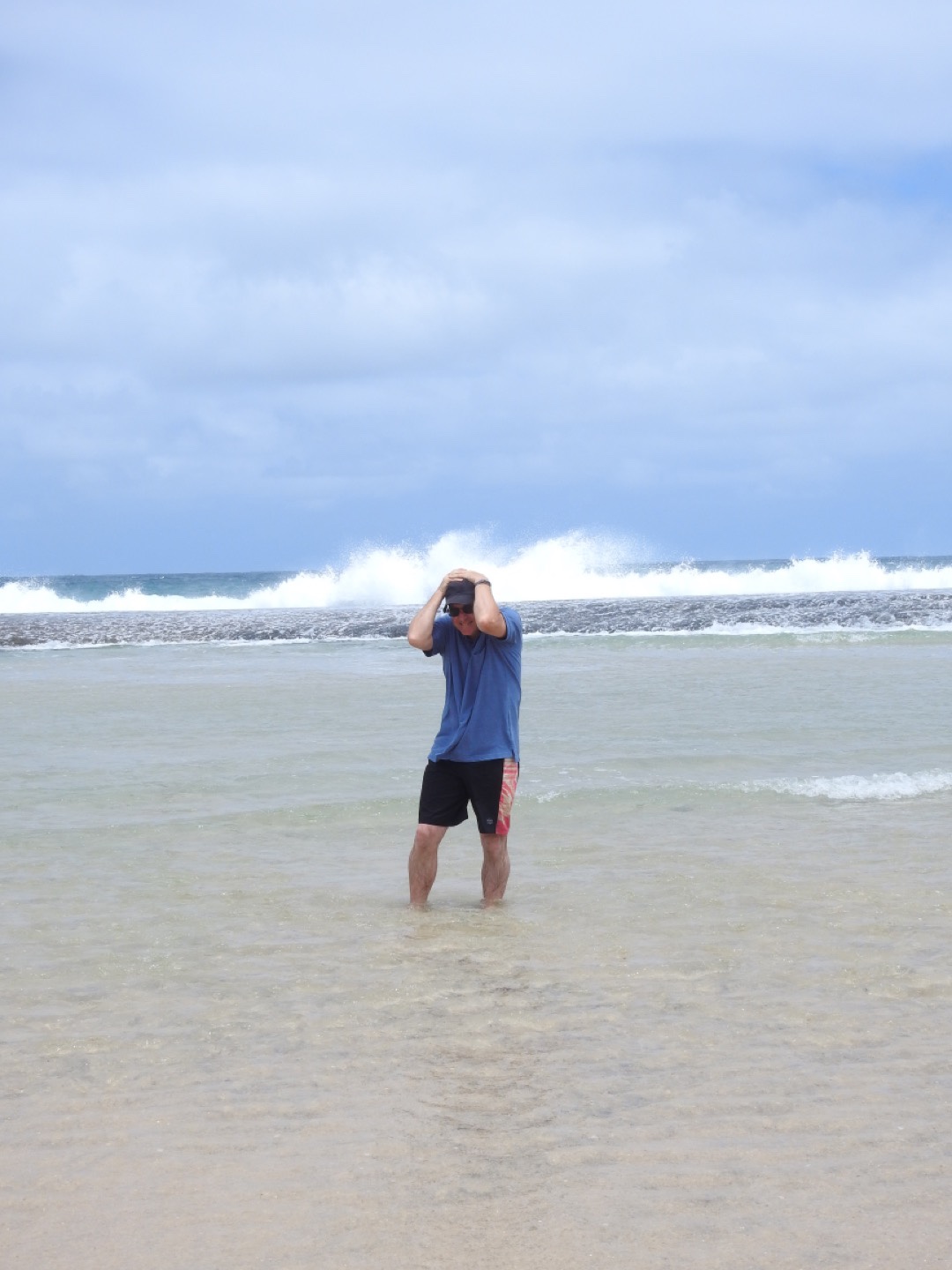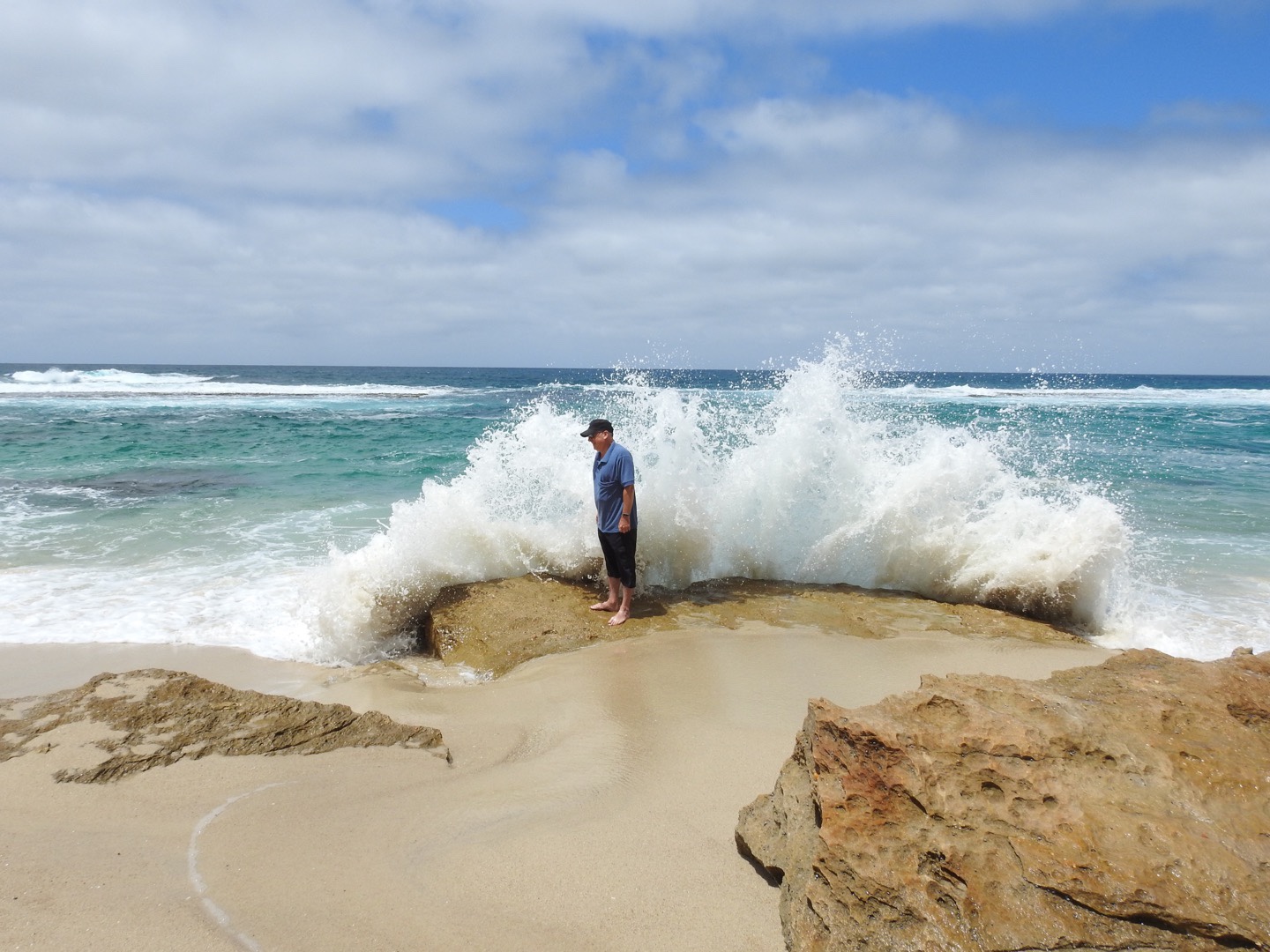 Today we headed east to explore the coast in the opposite direction. Surprisingly, nothing hurts too badly after our climb yesterday. Our first stop was coffee and a loaf of bread from the bakery before we rolled along the road towards the various beaches suggested by the CP owner. The coast here is as rugged as it comes as we found out at 5 Mile Beach. But for all it is rugged it is also stunning. At this spot we watched the waves smash into the beach and barrel up the sand. They are ice blue against the blue-green sea. The reef ensures they are huge as they hit the wall. Among the shells we found a couple of natures best bangles, one for a little girl on the beach and one for me. What a grand spot to drink a coffee!