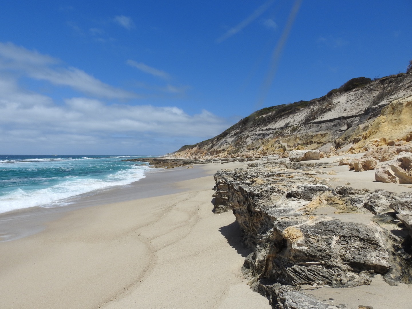 In the late afternoon we buzzed into Bremer for a quick trip to the beach. We chose Native Dog beach which was perfect. We had it to ourselves and loved the colour, the waves and the pristine sand. And unlike the others we saw yesterday, you can’t drive on this one so there were no tyre tracks. Just footprints …