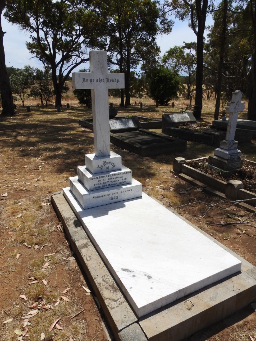 Our next stop was Saint Werburgh’s Chapel. It’s a small church well out of town, on a private property but the public are welcome to visit. As it turns out we have this very vague connection to the chapel. More about that in a minute. As we were driving there we were trying to work out how to pronounce Werburgh and also who St Werburgh was. We have decided it rhymes with Edinburgh and once inside we found out all about the Saint. Saint Werburgh was a woman! She was a princess in the England during the 7th Century. There is a link between the city of Warburton in the UK and St Werburgh. This explains why this little chapel is name after this obscure Saint. The gent who built the chapel on his property was George Edward Egerton-Warburton. There is a cemetery alongside the chapel where he and others from the family are buried or remembered. So what is our connection? Well, The Piper bought a car about a year ago from a direct descendant of George’s. The young man’s name is on a plaque in the cemetery, “and grandfather to …”