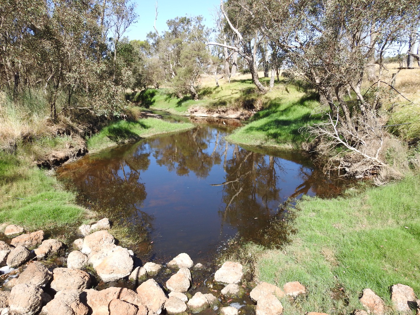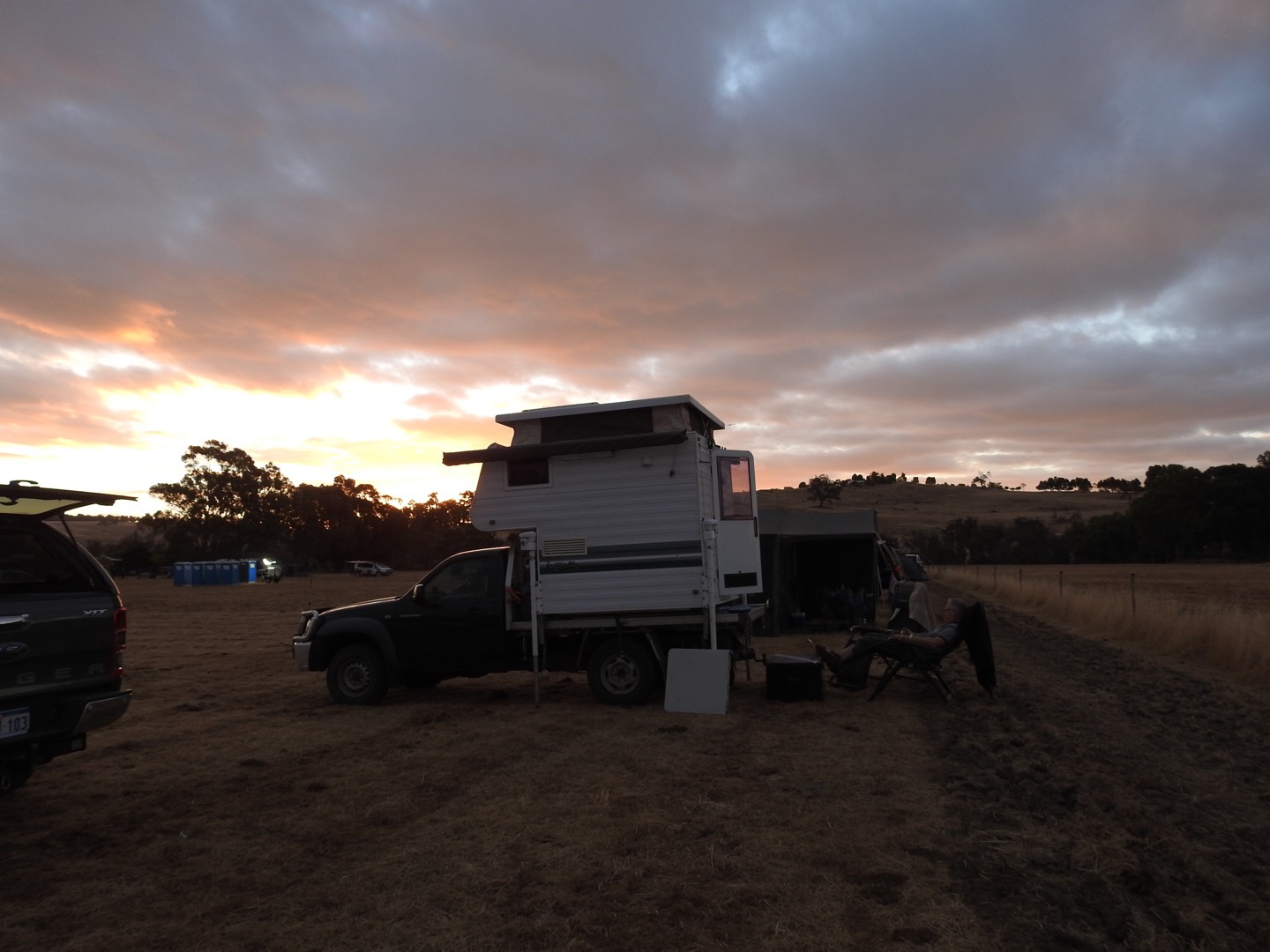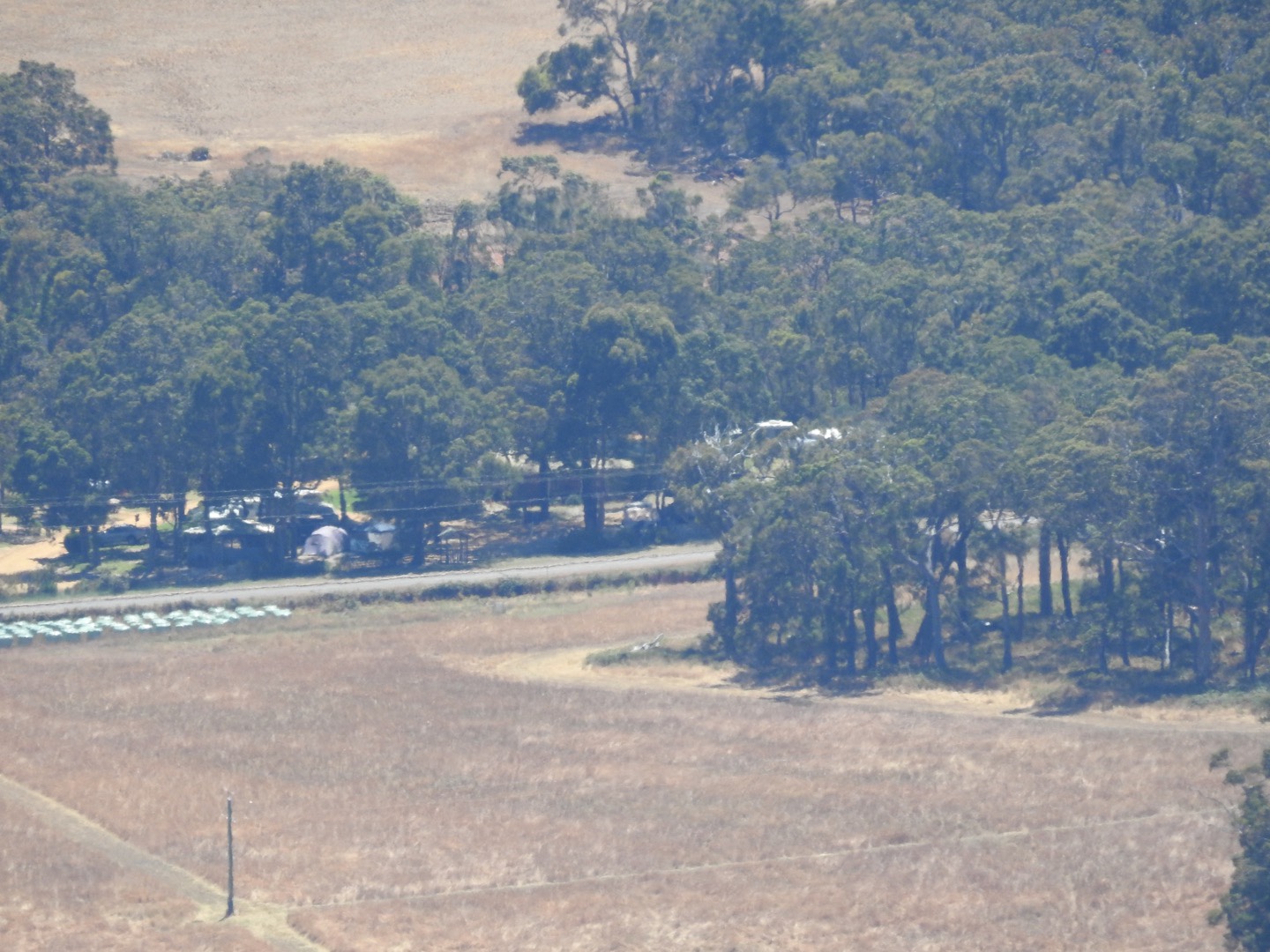 Anyway, rather than wish away the year, we have a holiday to finish. After a slow start we left the hotel paddock and headed for our next stop. But first, coffee in Collie. Then we headed back the way we came, about 10kms out of town, followed by about 8kms of dirt road. The farm stay gets 4 stars (out of 5) and great reviews. We arrived to find our host, Ruben, had “just gone to town”. So we parked up and had a bit of a look around. The dam was part full and had a flying fox into it. There was a “bar”, but you need to byo. Still no sign of Ruben, so we looked for the bathroom. No sign of that either. We wandered into the camping area, a dry and dusty paddock and chose a spot to claim later. Then we wandered back to Maz in the main area. The person who told us that Ruben was in town then turned on a bit of AC/DC, shattering the peace. Not long after that a car pulled up and a bloke got out carrying a box of beer. By now I was thinking we had made a mistake, but Mr P was apparently keen on staying (or so I thought). I think the smell of marijuana changed his mind. Almost simultaneously we looked at each and said “are you sure you want to stay here?” Trying to look inconspicuous in our conspicuous car and camper, we drove away. I thought we could get out to town without retracing our steps, but 5kms up the road we needed to do a u turn and drive straight back past Ruben’s place! Not that they would notice us in our inconspicuous set up!