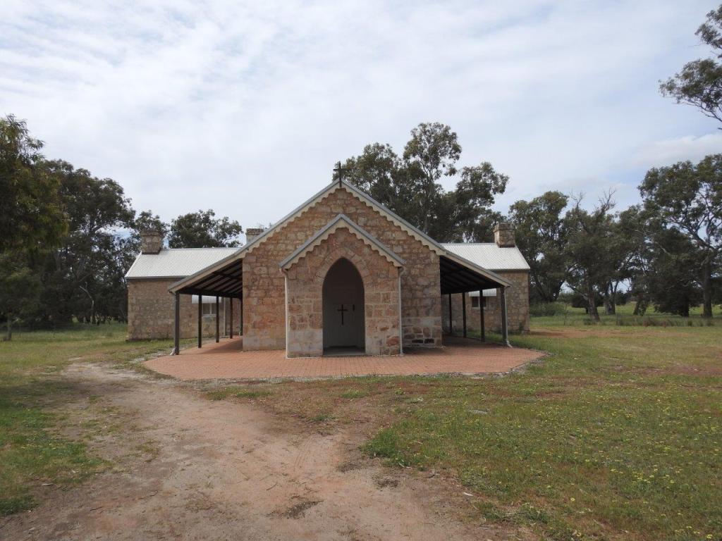 Sunday morning was not quite as bright as Saturday and the flies were even friendlier, so we decided to eat breakfast inside. It’s at this point that we always congratulate ourselves on having a unit with an indoor kitchen, away from the elements and the insects. If only we could pack up without flies up the nose and in the ear! At least friendly flies get you cracking along, and we got packed up in good time and off down the road to Badgingarra. We decided to take the Dandaragan Way, a tourist drive, stopping at Ian Wilson Reserve then in Dandaragan itself. No orchids in the reserve, but there was water in the Hill River. In Dandaragan we were impressed with the campsite that offers power and water hook up, as well as toilets and showers in a neat park setting. We also enjoyed a wander around St Anne’s church, admiring one of the most branching trees we have ever seen. It would be a ripper for a tree house!