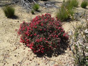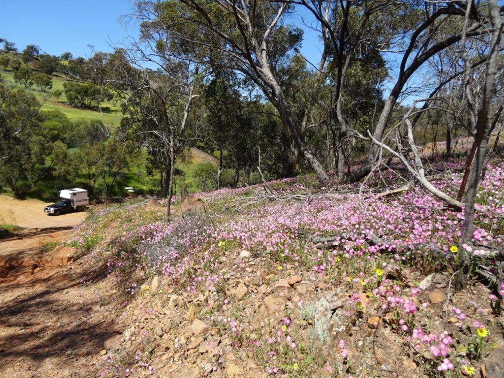 Back in the car, we rolled off to find Browns Well, without any luck. Perhaps the photo of the map in the information shelter wasn’t such a good idea. Before we knew it we were back in a Koorda, fruitlessly looking for orchids in the bush near the caravan park. With our finding skills in the toilet we decided to head back to the caravan park to see if we could find our friends. Indeed, they were there, having a bite to eat before setting up the camper. Something else we found was the sign saying the caravan park is full over the weekend! Oh dear, that means we are parked on someone else’s site! Nothing for it but to move before the people who have booked it turn up and rightfully expect their site. Luckily Tas is easy to load onto and back off of Maz, so we were all able to move to the unpowered section. Actually if we had been on our own, given how full the park was last night, we would have just gone straight to the unpowered section, as we don’t need power and didn’t bring a cord. Anyway, here we are now, away from the rows of vans, with room to move and have a fire!